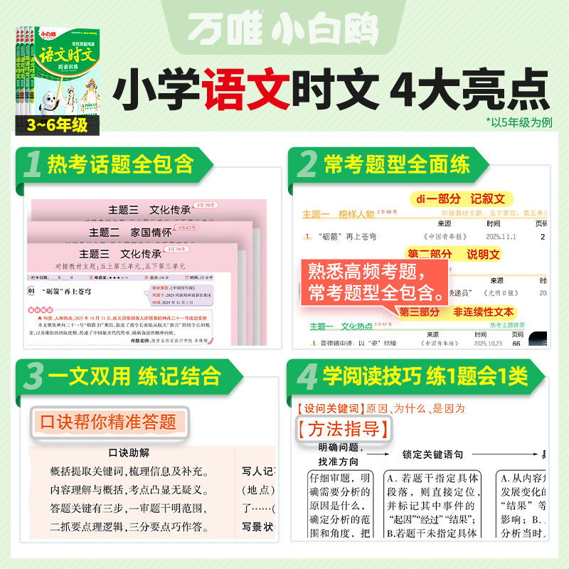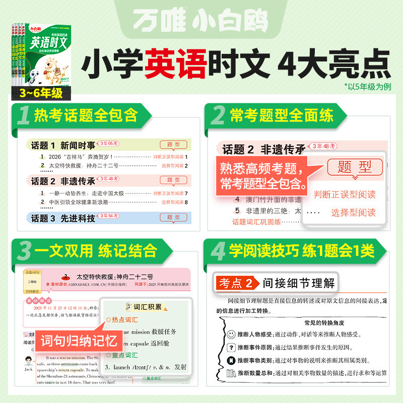 📚 【26年1月新书】万唯小白鸥阅读训练英语语文时文阅读真题同源小学三四五六年级阅读理解专项训练完形填空练习学霸练习衔接小升初
