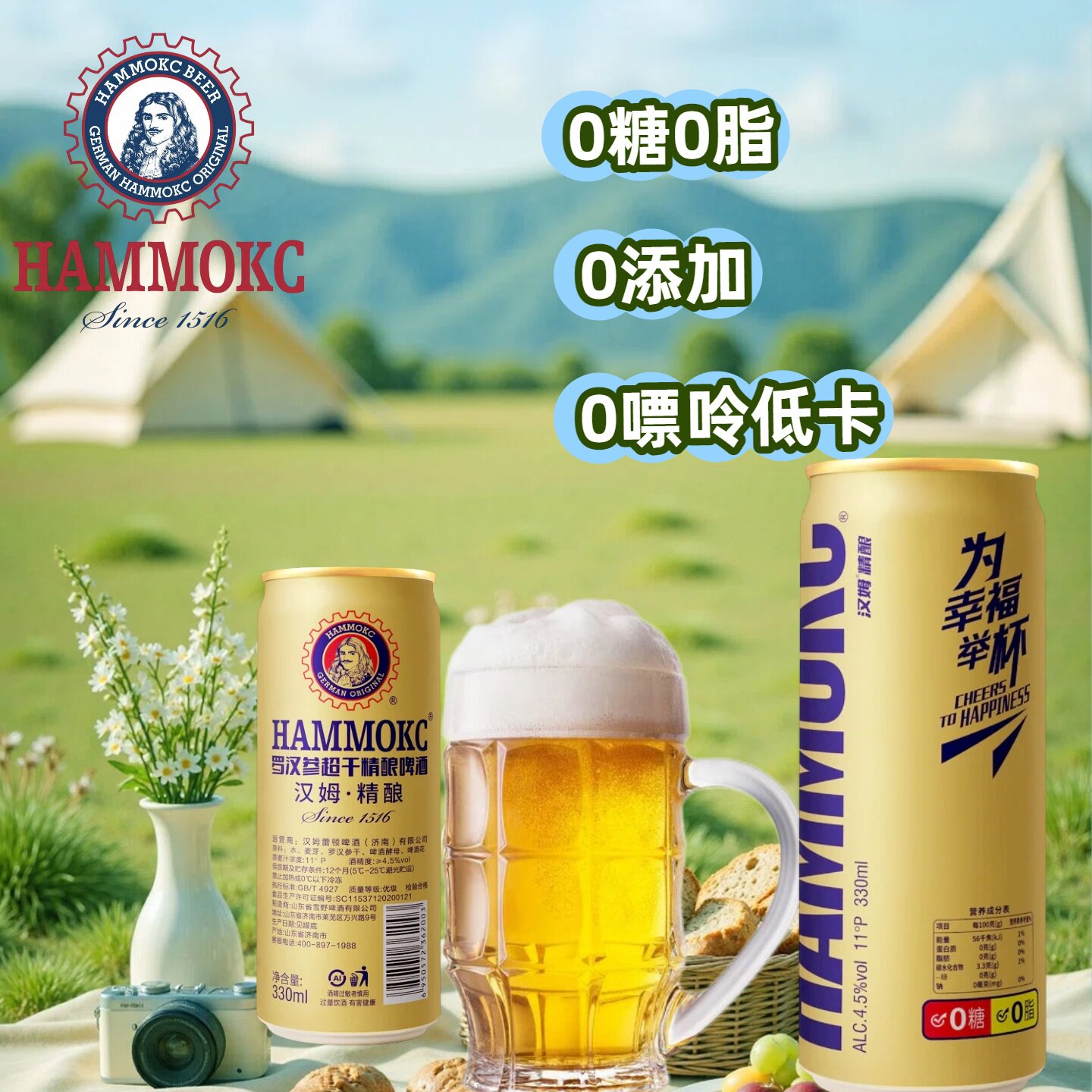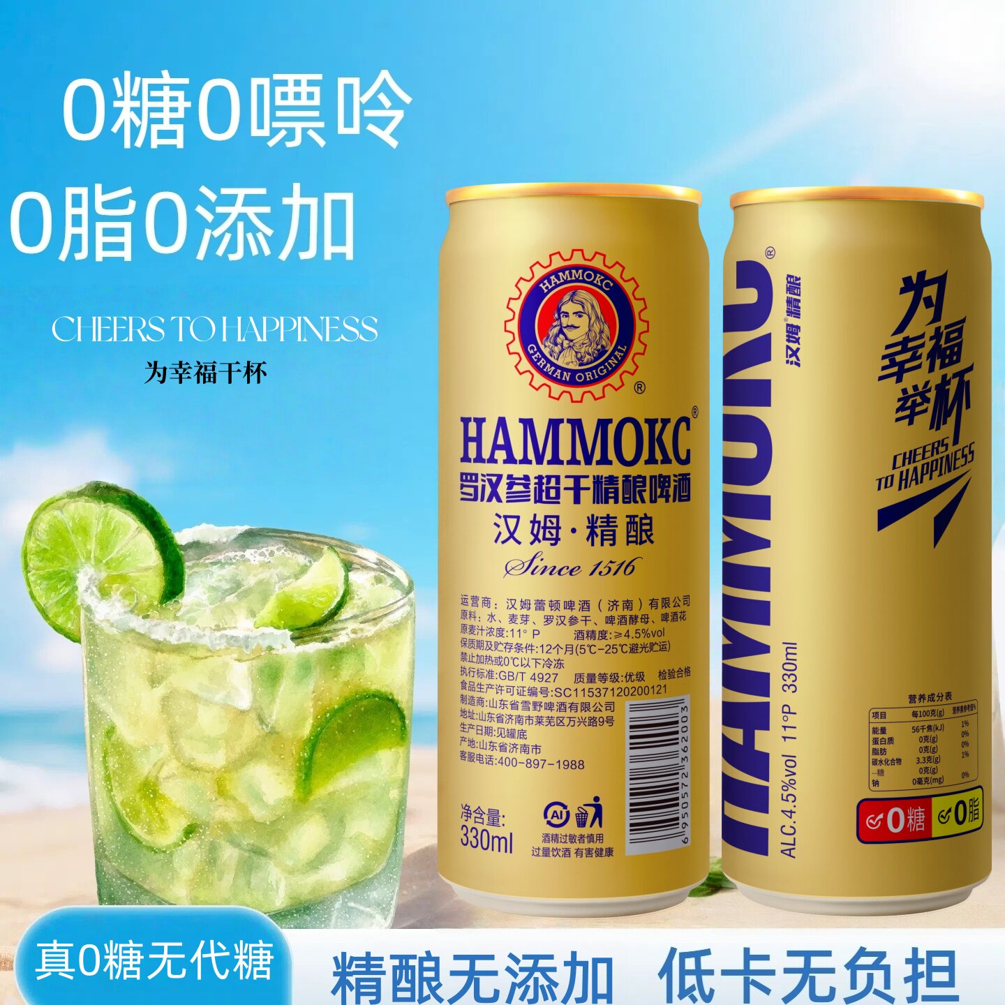 📚 汉姆超干精酿无糖啤酒低卡0嘌呤0脂无添加330ml24罐整箱