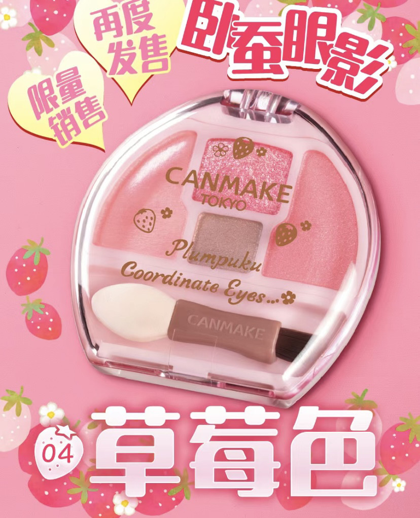📚 现货发限定再发售日本Canmake井田卧蚕眼影 草莓红 04