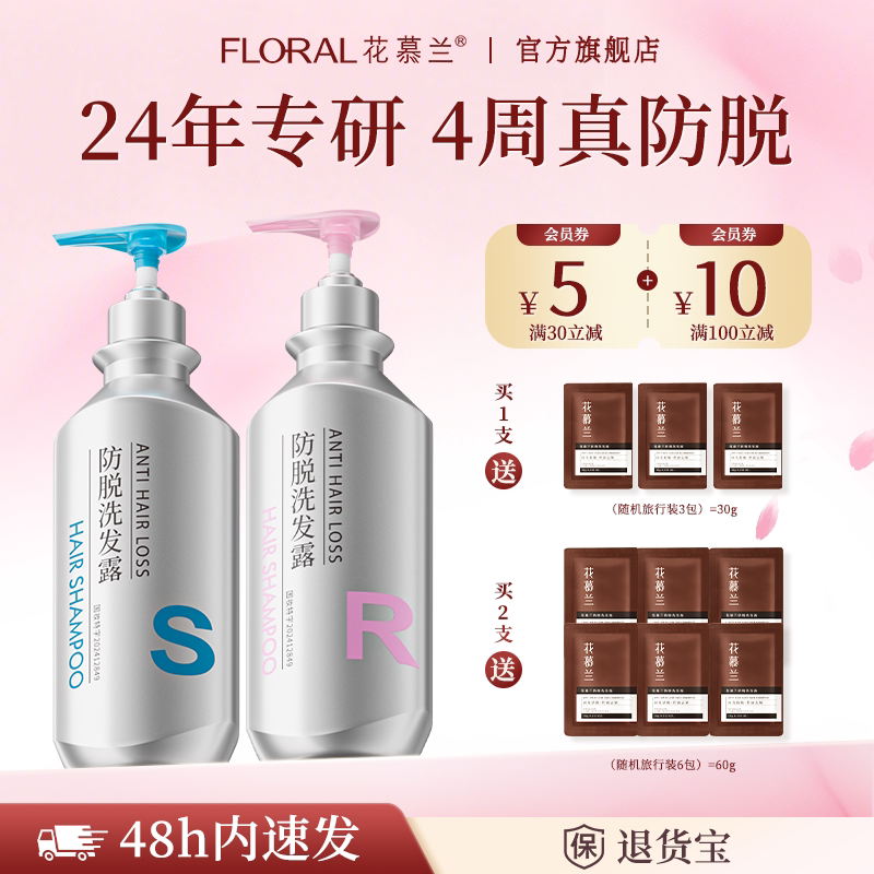 📚 花慕兰洗发水floral持证防脱固发侧柏叶何首乌人参男女用官方旗舰