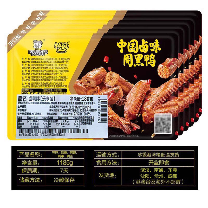 🍽️小伙伴们,今天我要跟大家分享的是我在【周黑鸭旗舰店】购买的6盒卤鸭脖、鸭锁骨、鸭翅、鸭舌和鸭掌,简直让我爱不释手!😍