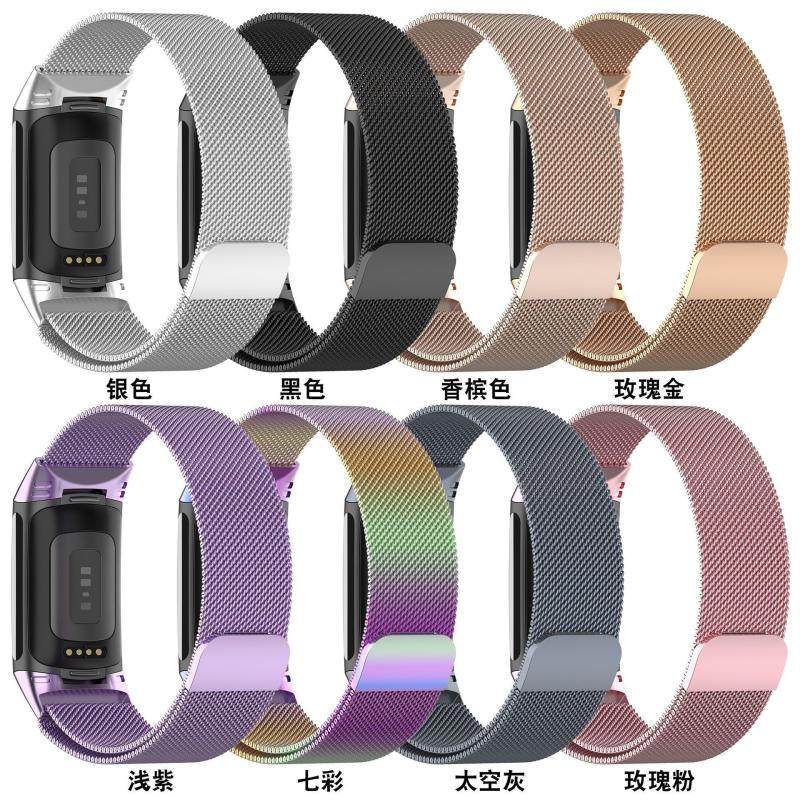 📚 适用于fitbit charge6/5智能手表磁吸表带不锈钢回环替换腕带菲比手环商务款金属个性潮男女生米兰尼斯表链