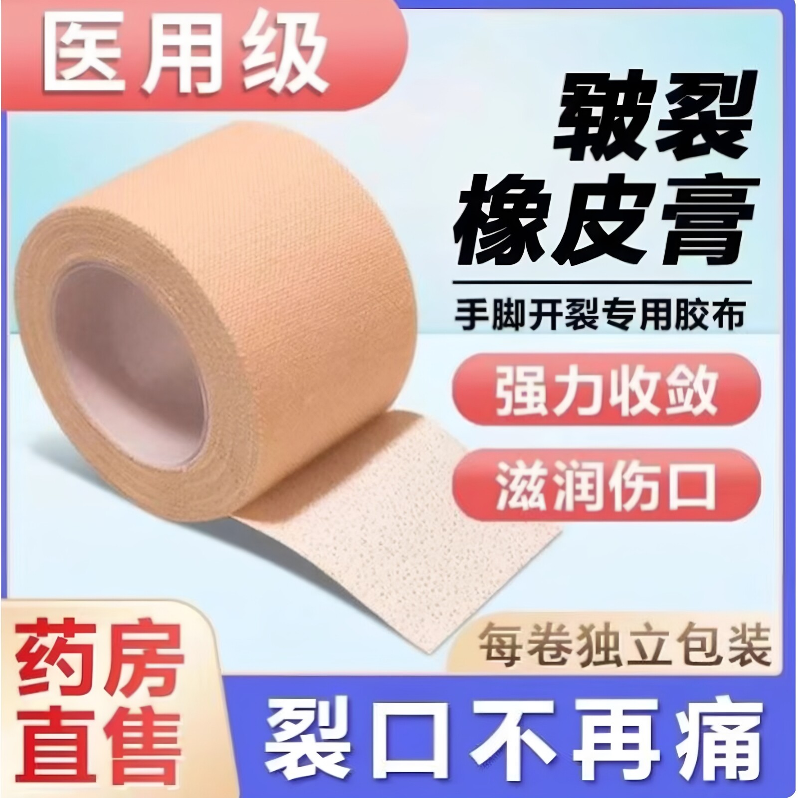 📚 医用胶布手裂贴皲裂手脚干裂贴手指干裂贴手足裂口橡皮膏防裂胶带