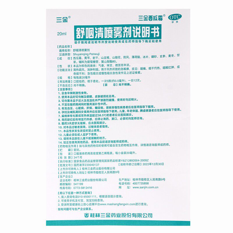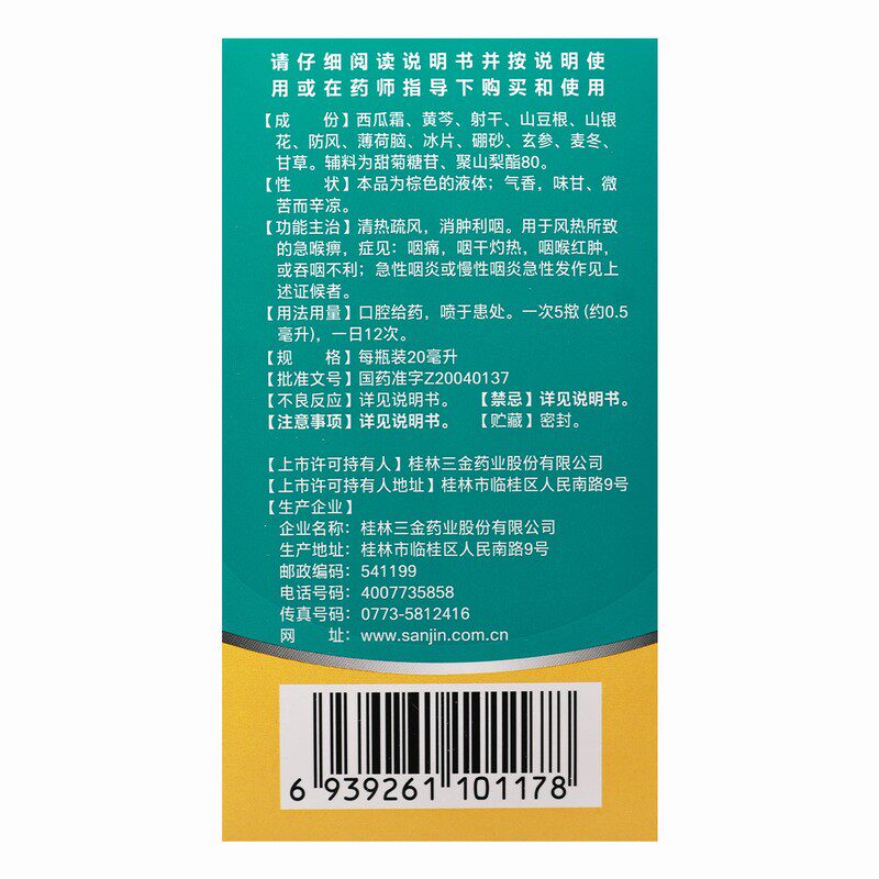 📚 三金舒咽清喷雾剂20ml清热疏风消肿利咽急性咽炎咽干灼热咽喉红肿