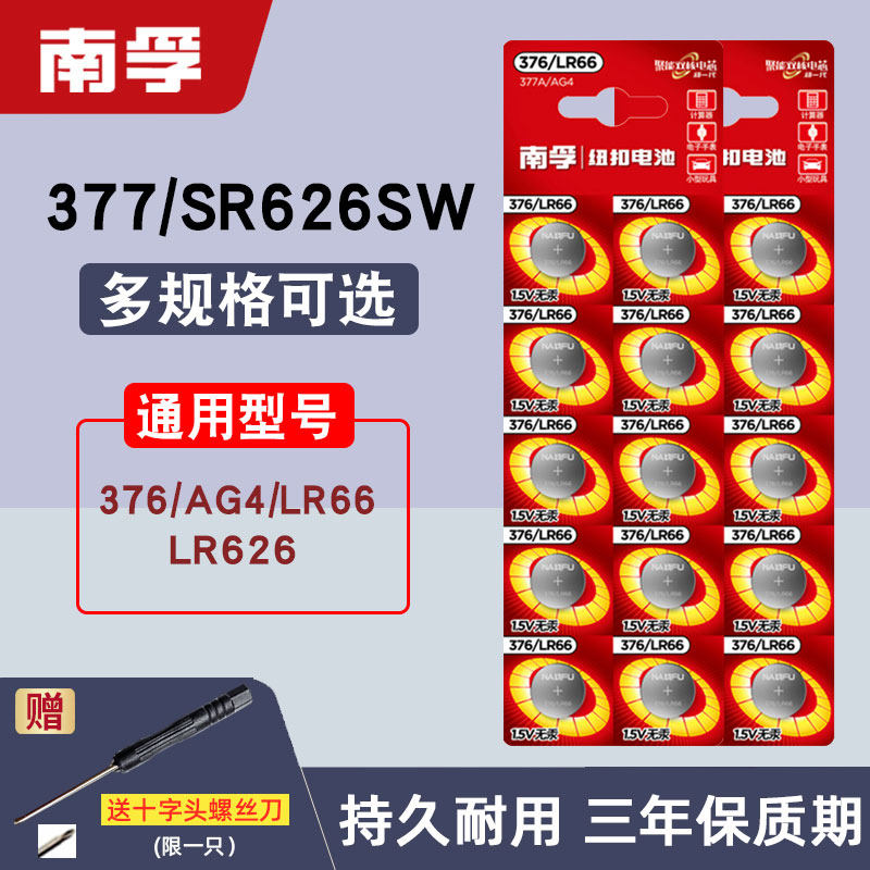 📚 南孚纽扣sr626sw卡西欧手表电池小颗粒通用ag4电子377a钮扣lr626h