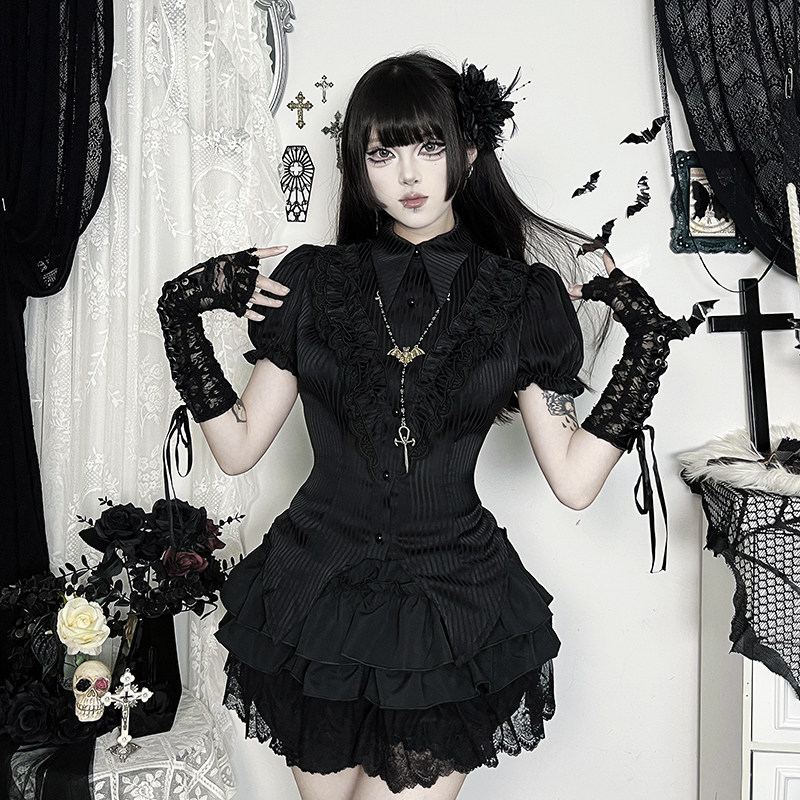 📚 Wannathis暗黑哥特黑色上衣辣妹穿搭亚文化衬衫亚比y2k半身裙套装