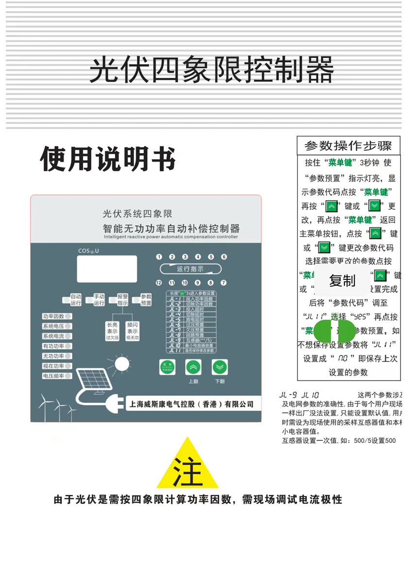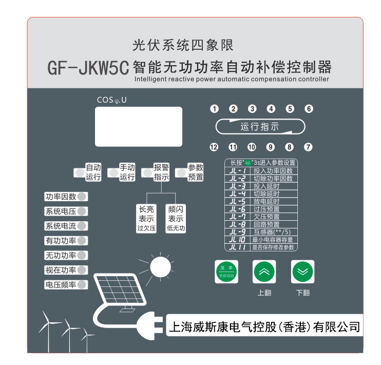 📚 威斯康光伏四象限专用JKW5C无功功率因素自动补偿控制器GFJKW-G