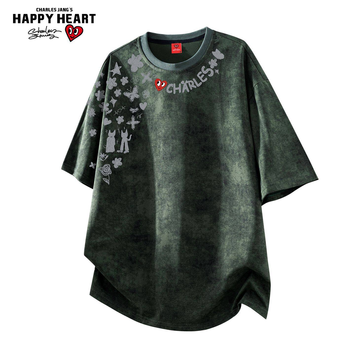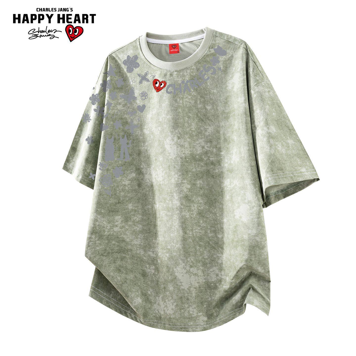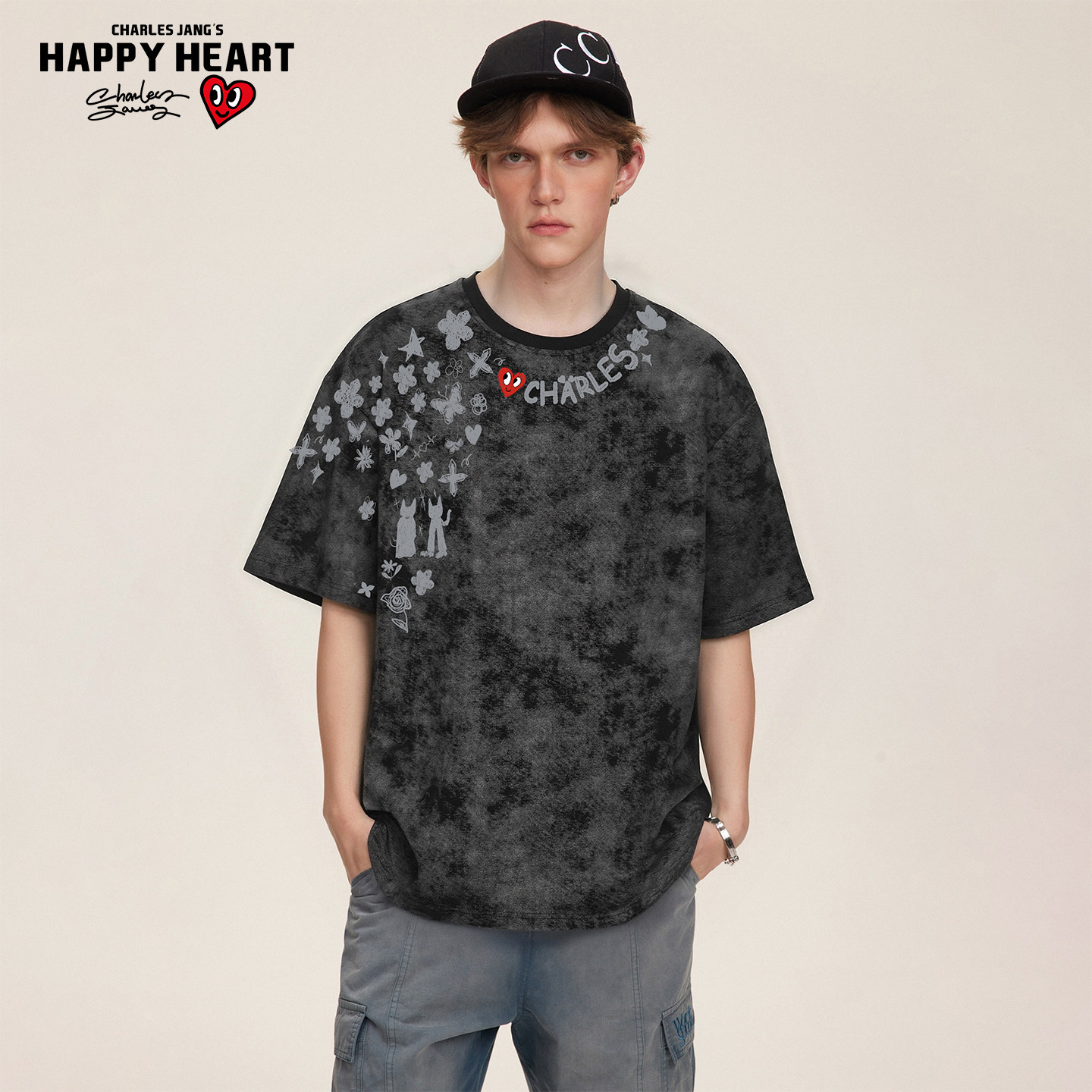 📚 查尔斯桃心 扎染花卉涂鸦宽松休闲透气圆领短袖男女潮牌打底上衣