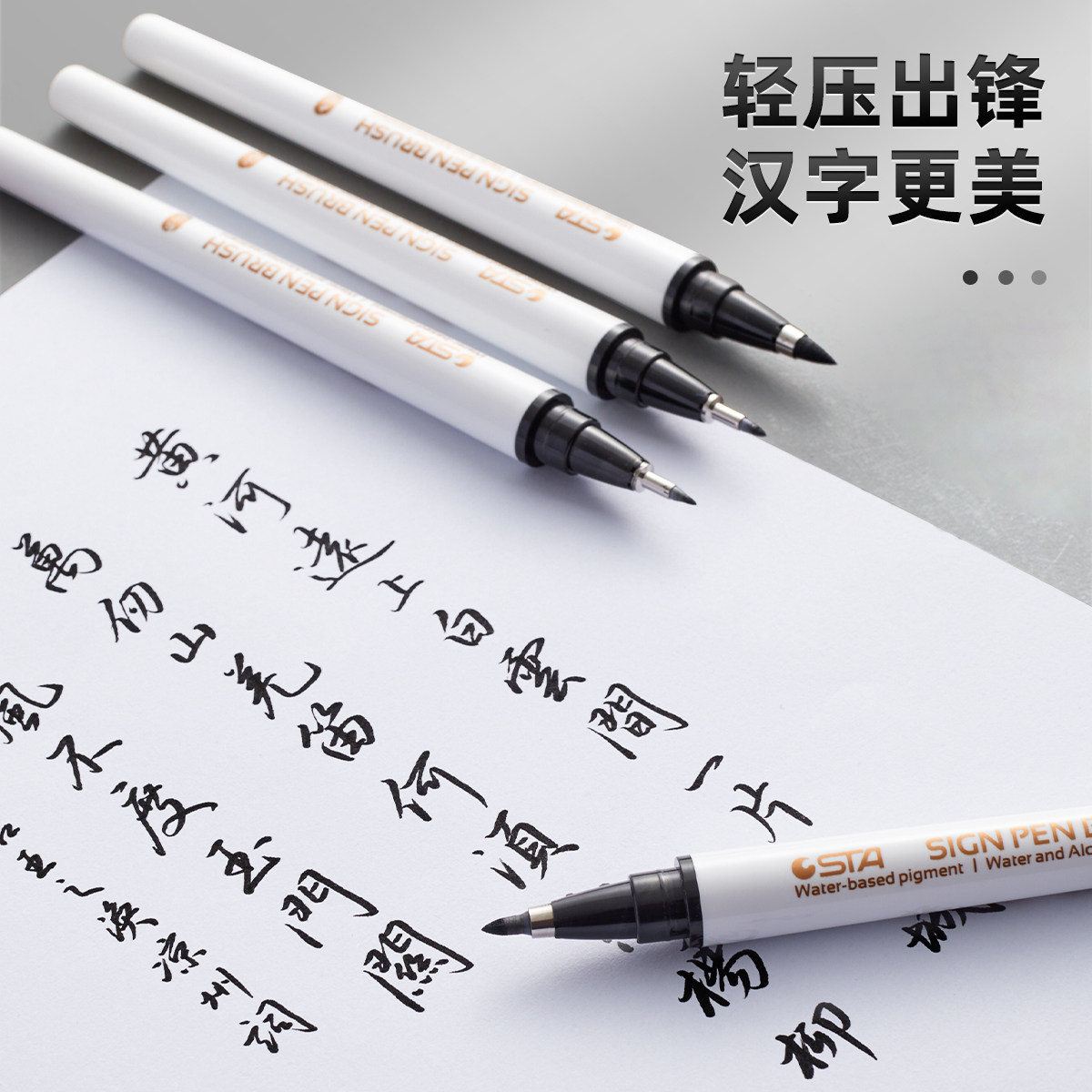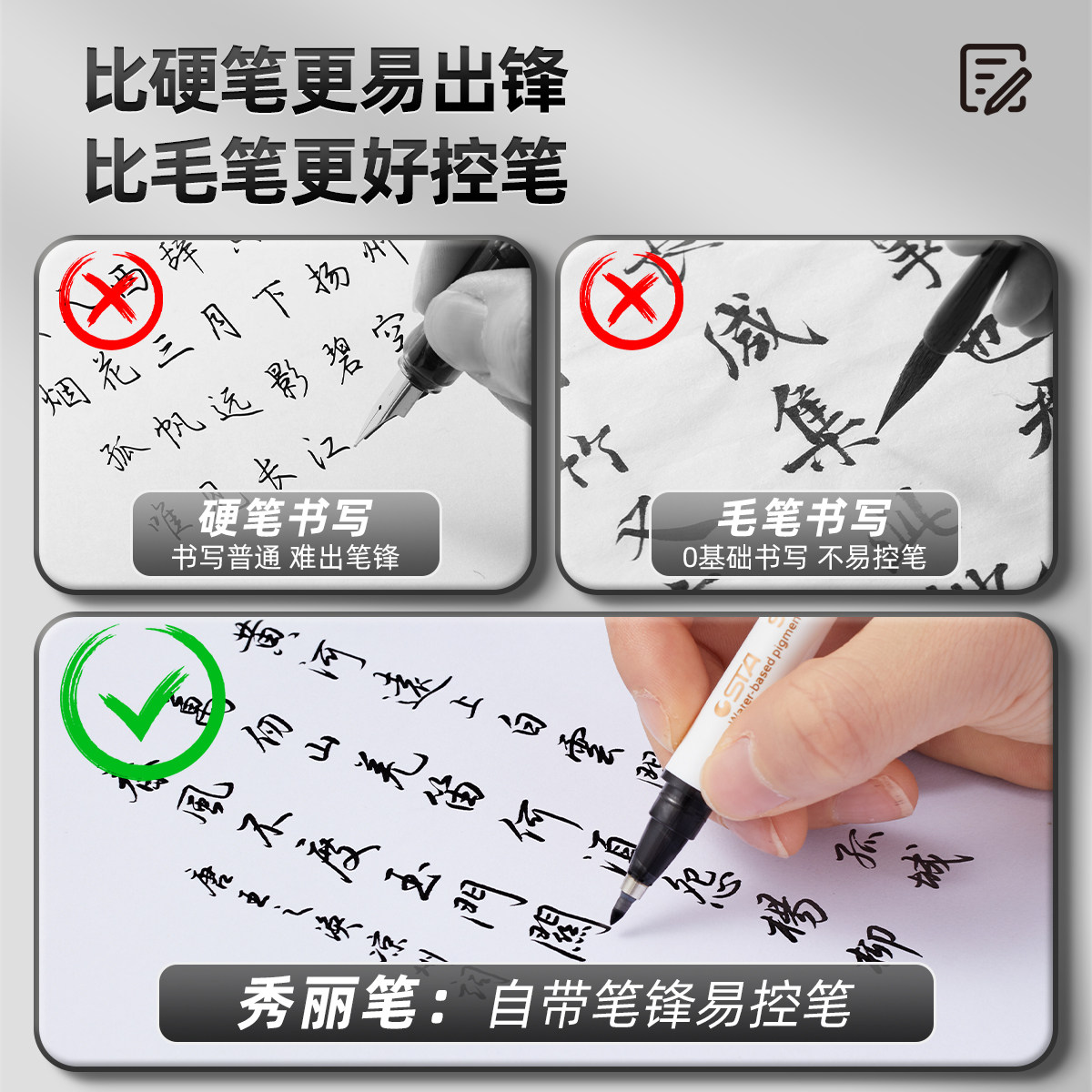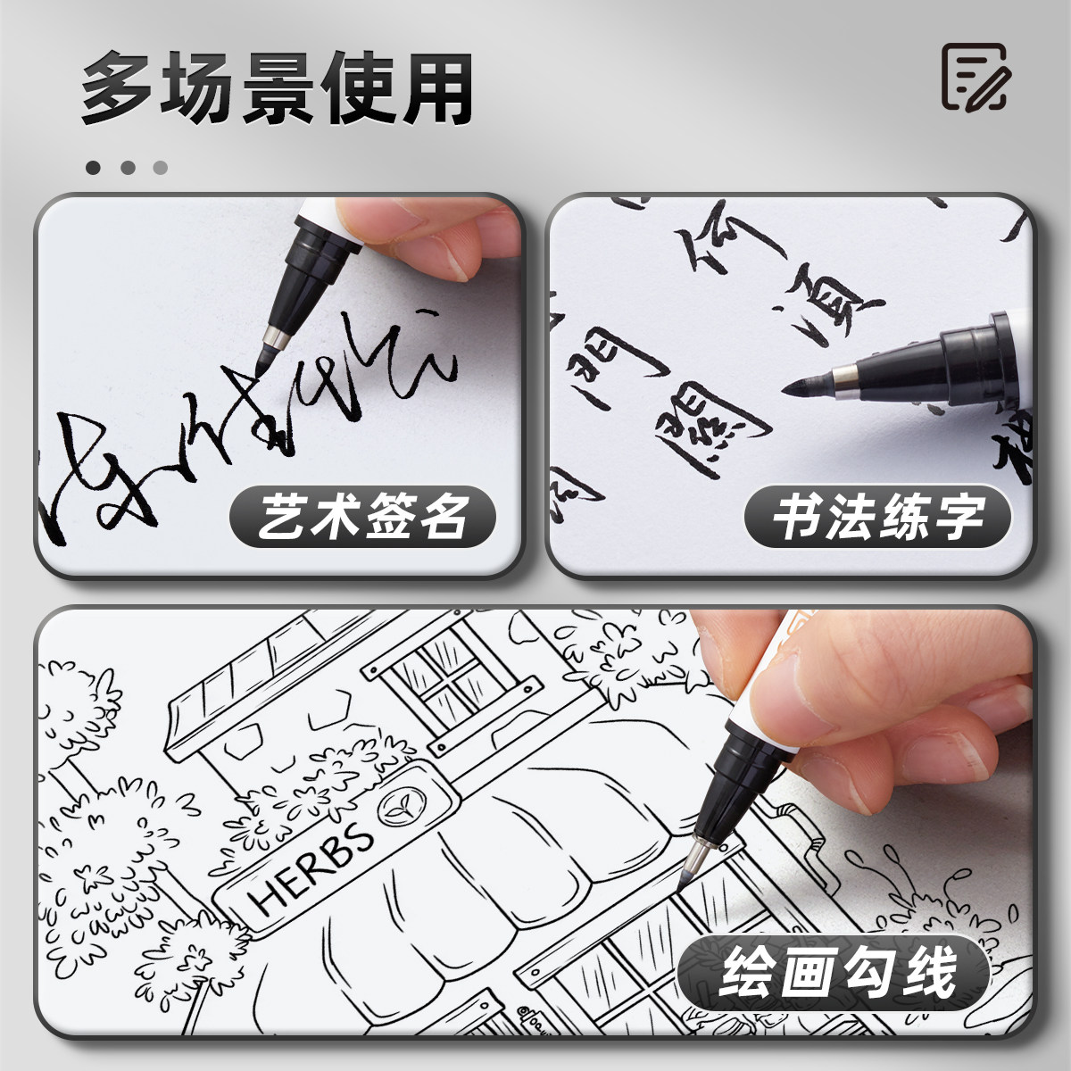 📚 六品堂秀丽笔练字勾线自带笔锋防水写作签名专用美术绘画勾线笔签名速写纤秀笔硬笔书法柔绘笔极小楷中楷大楷
