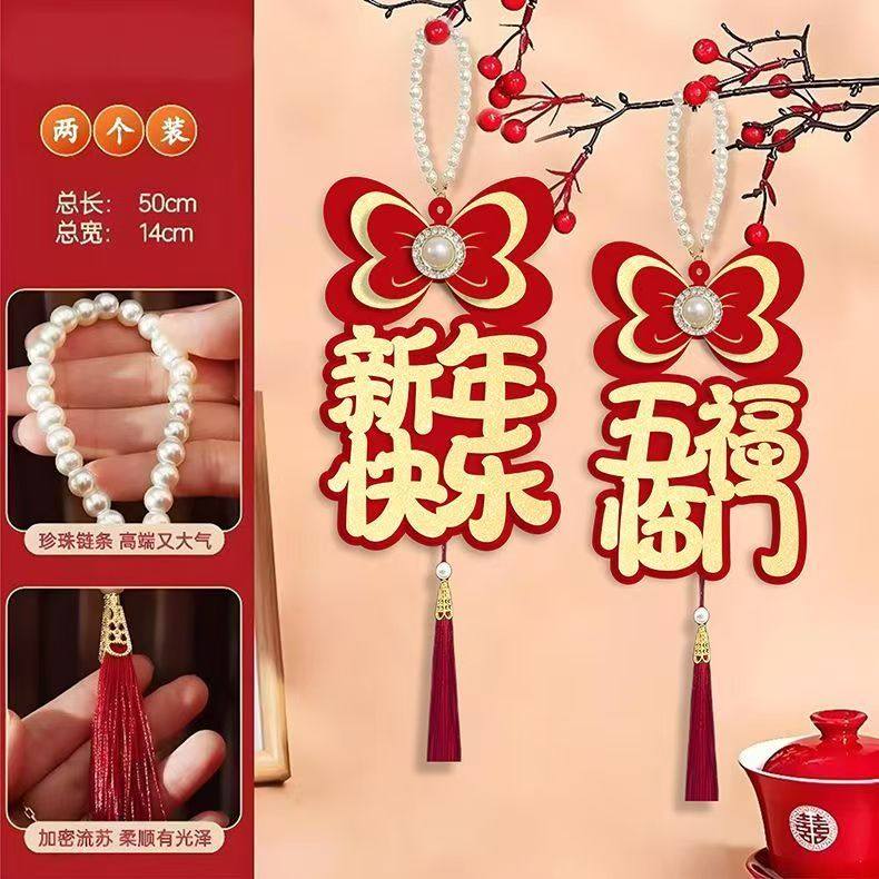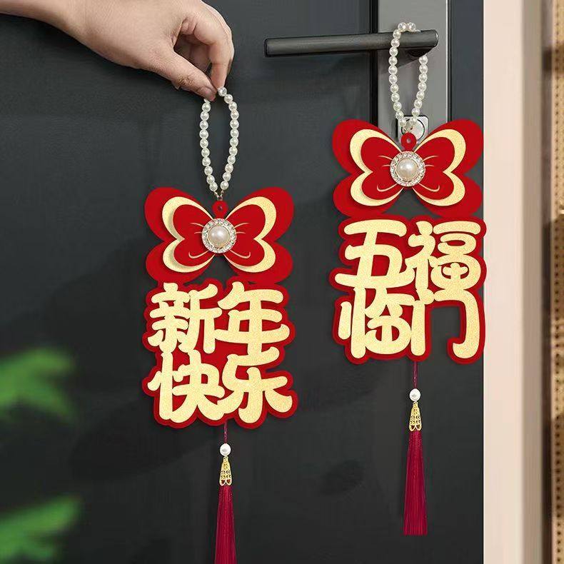 📚 2026新年装饰房间客厅门把手挂饰春节过年房门盆景福字小挂件吊饰