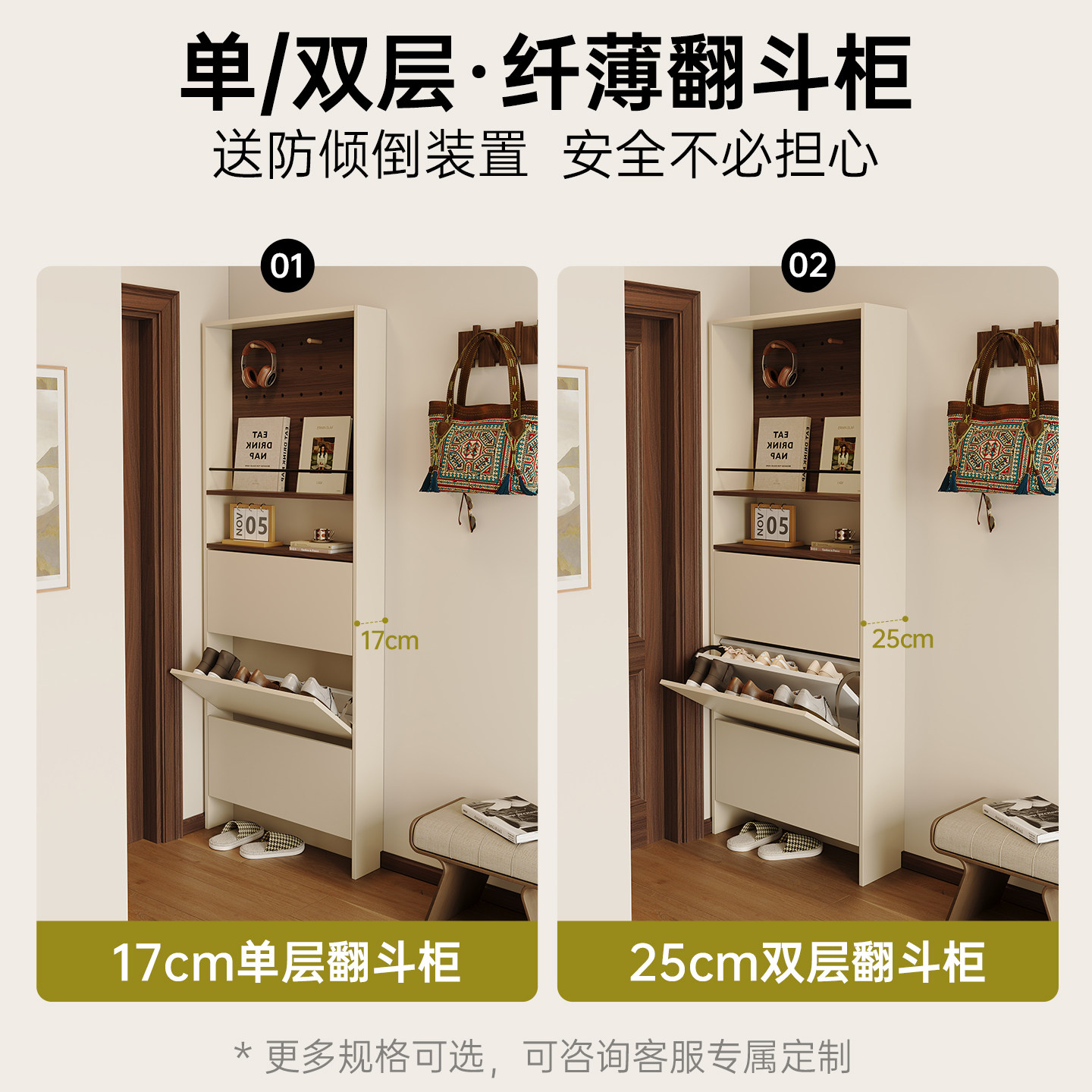 📚 中古风超薄翻斗鞋柜家用门口收纳柜一体靠墙门后极窄洞洞板储物柜