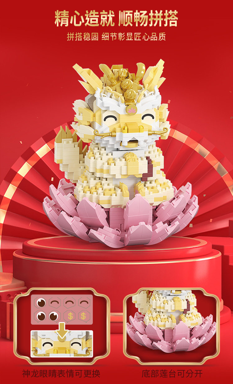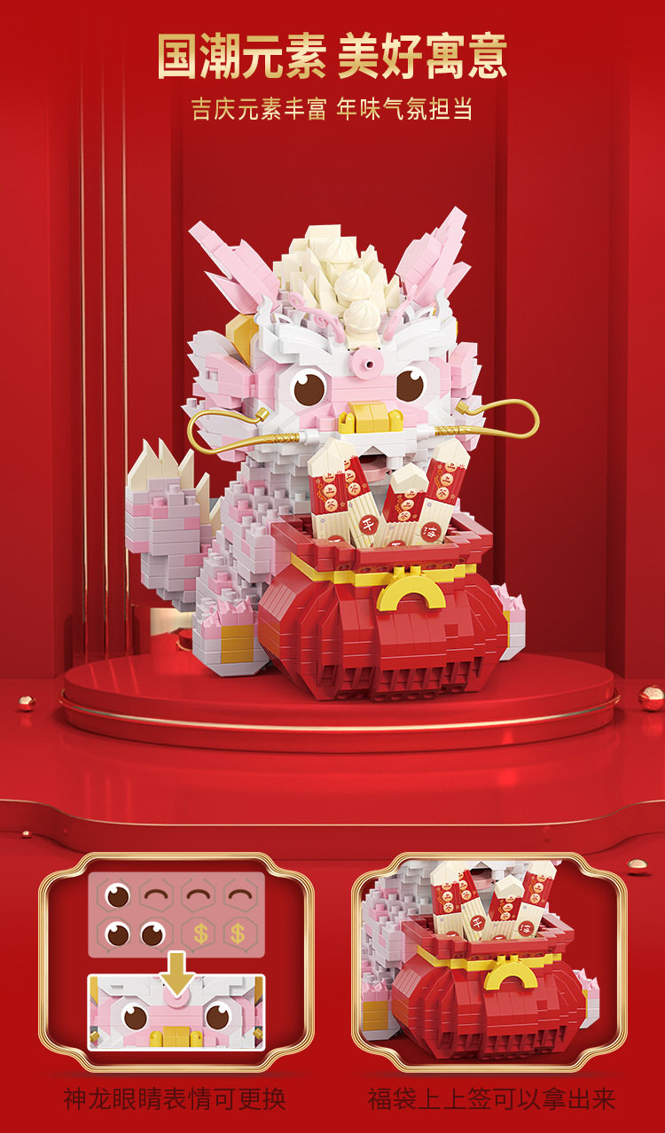 📚 【现货】礼物小颗粒积木福龙醒狮牌坊龙腾四海祥龙献瑞儿童玩具