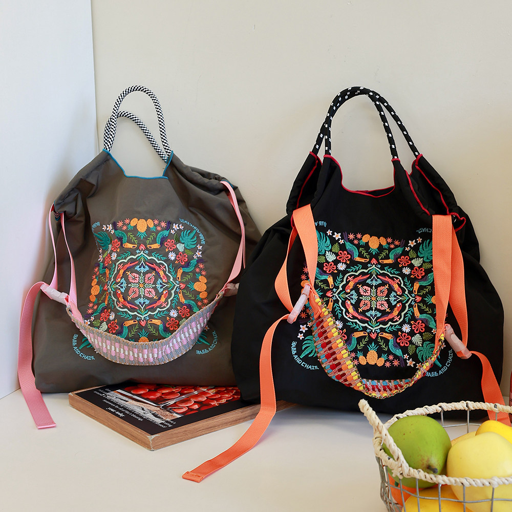 📚 高圆圆同款尼龙包ball chain购物袋环保斜挎女新款刺绣包大容量