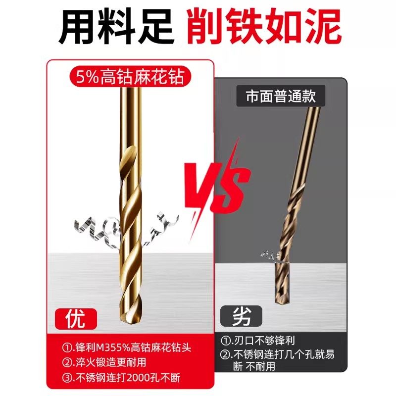 📚 含钴麻花钻头不锈钢板专用打孔钻花铁合金高硬度直柄转头套装大全