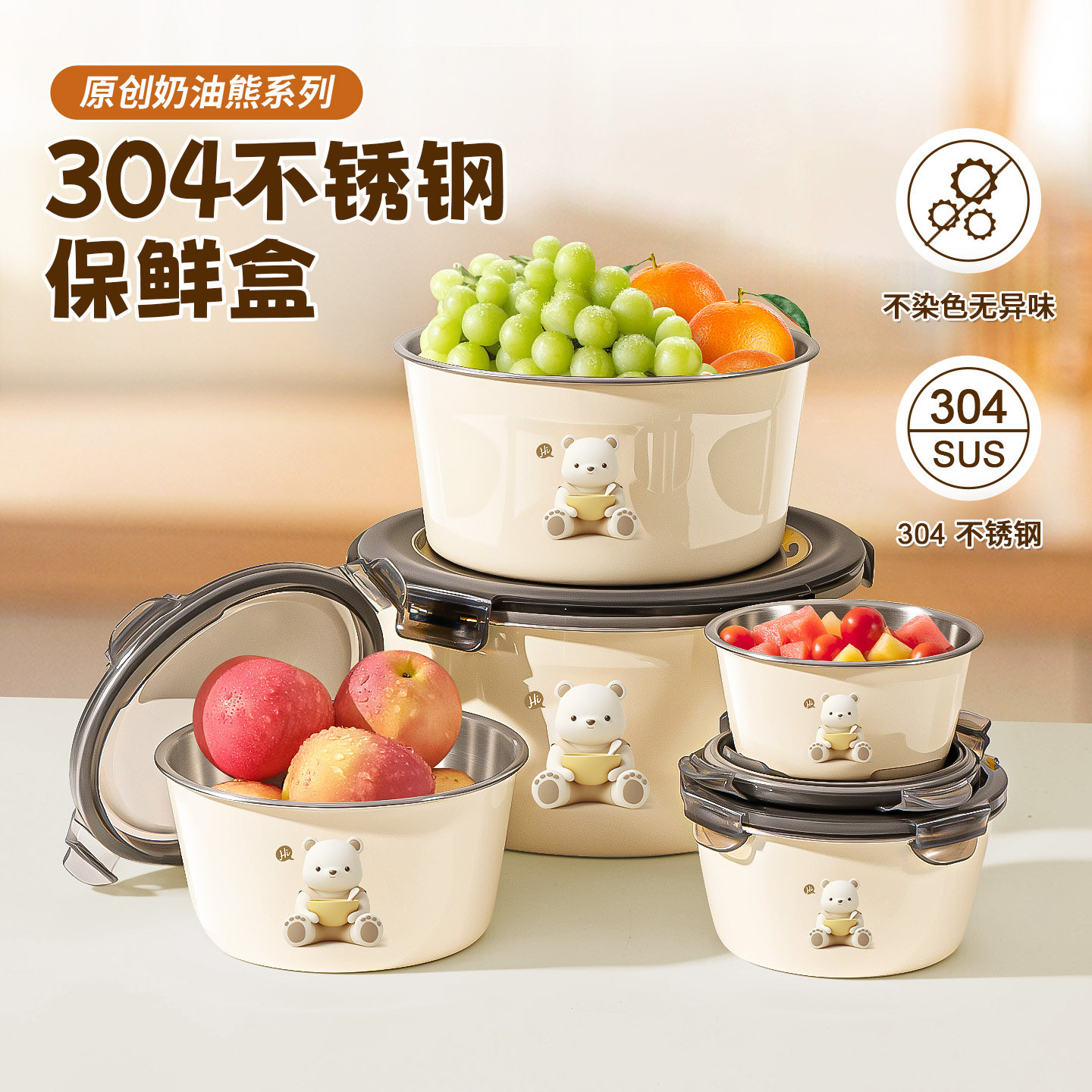 📚 食品级304不锈钢冰箱密封保鲜盒带饭装汤打包盒带盖碗家用水果盒
