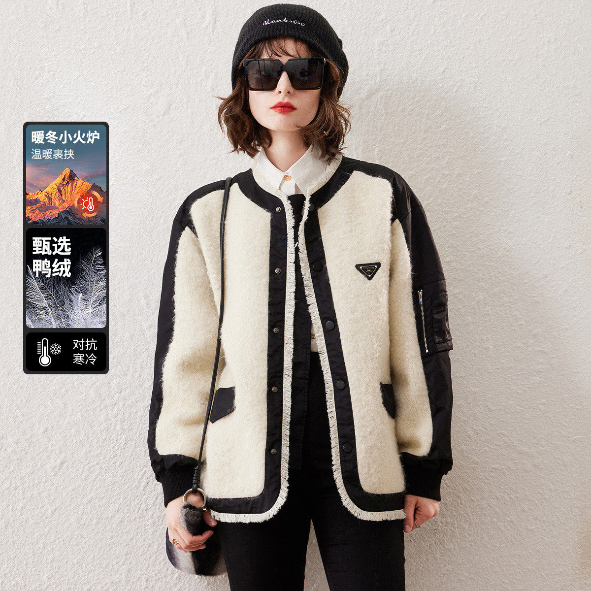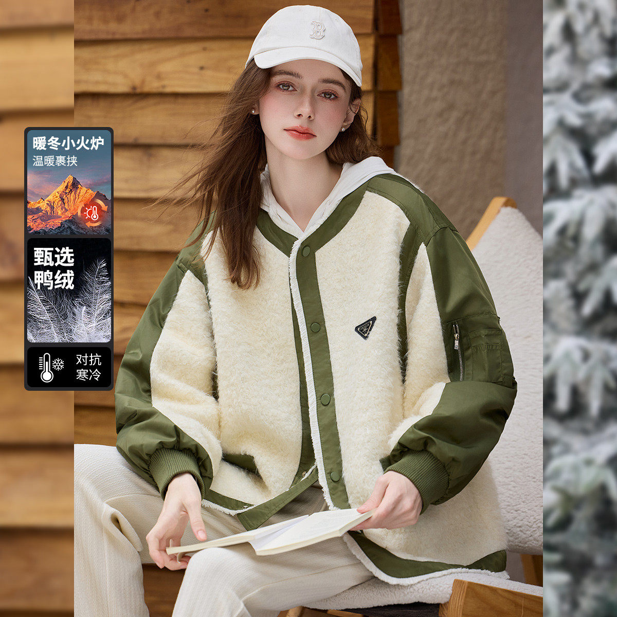📚 【专柜大清仓】&白鹿语撞色拼接宽松羽绒服鸭绒服女ZBX10029
