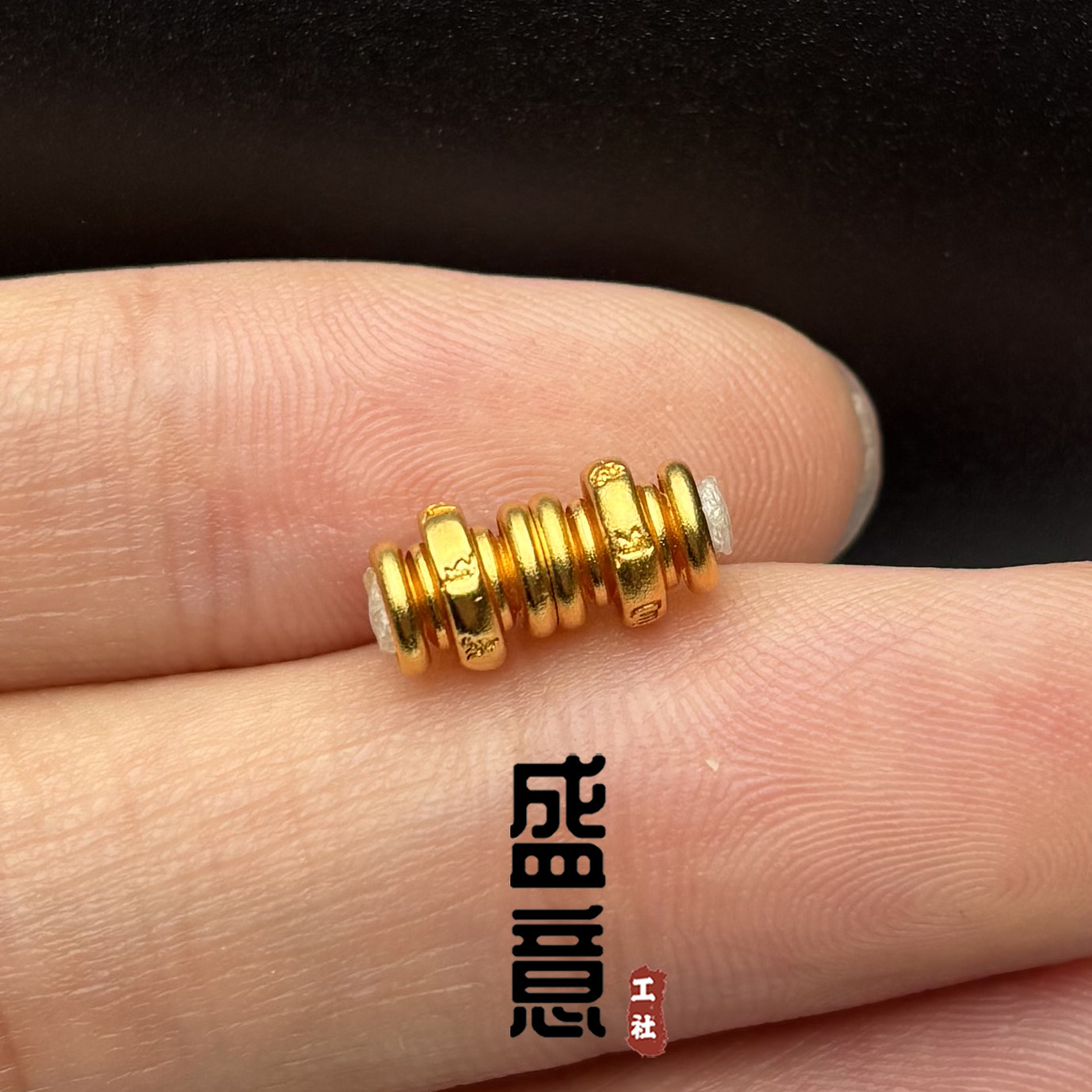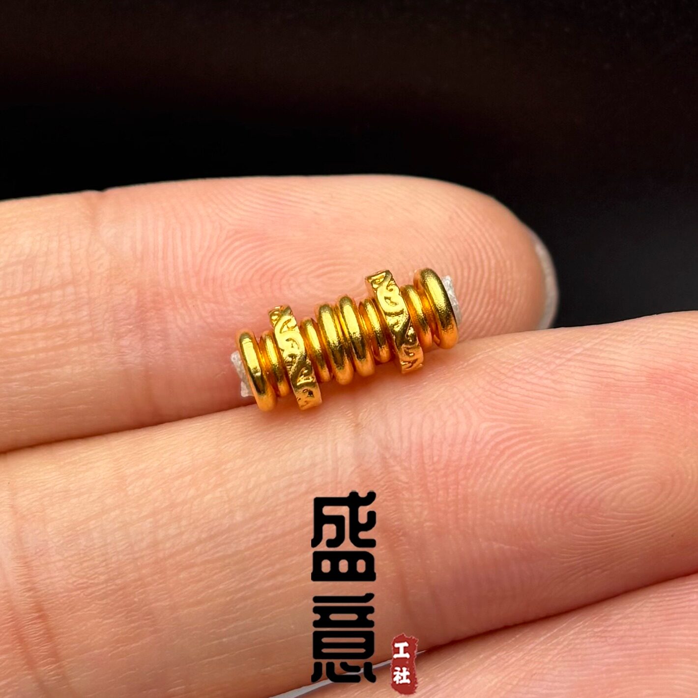 📚 古法24K工艺黄金色万向轴回纹六字真言唐草纹隔片珠文玩手串配饰