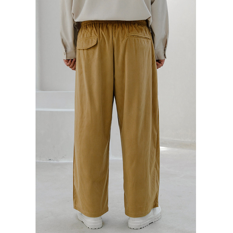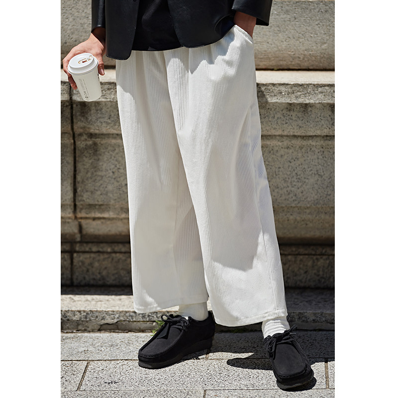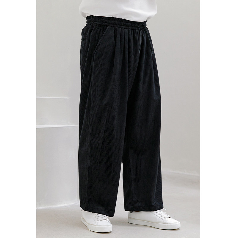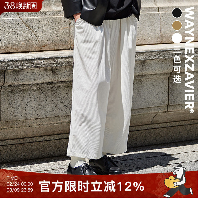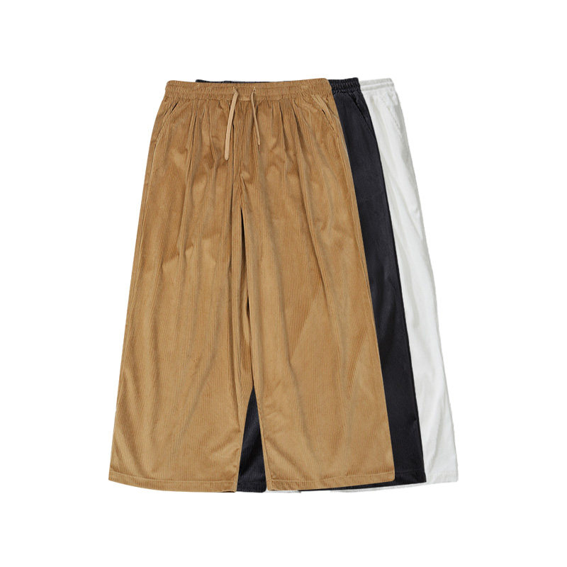 📚 韦恩泽维尔大码灯芯绒休闲裤男宽松夏百搭坠感卡其色阔腿裤子7117