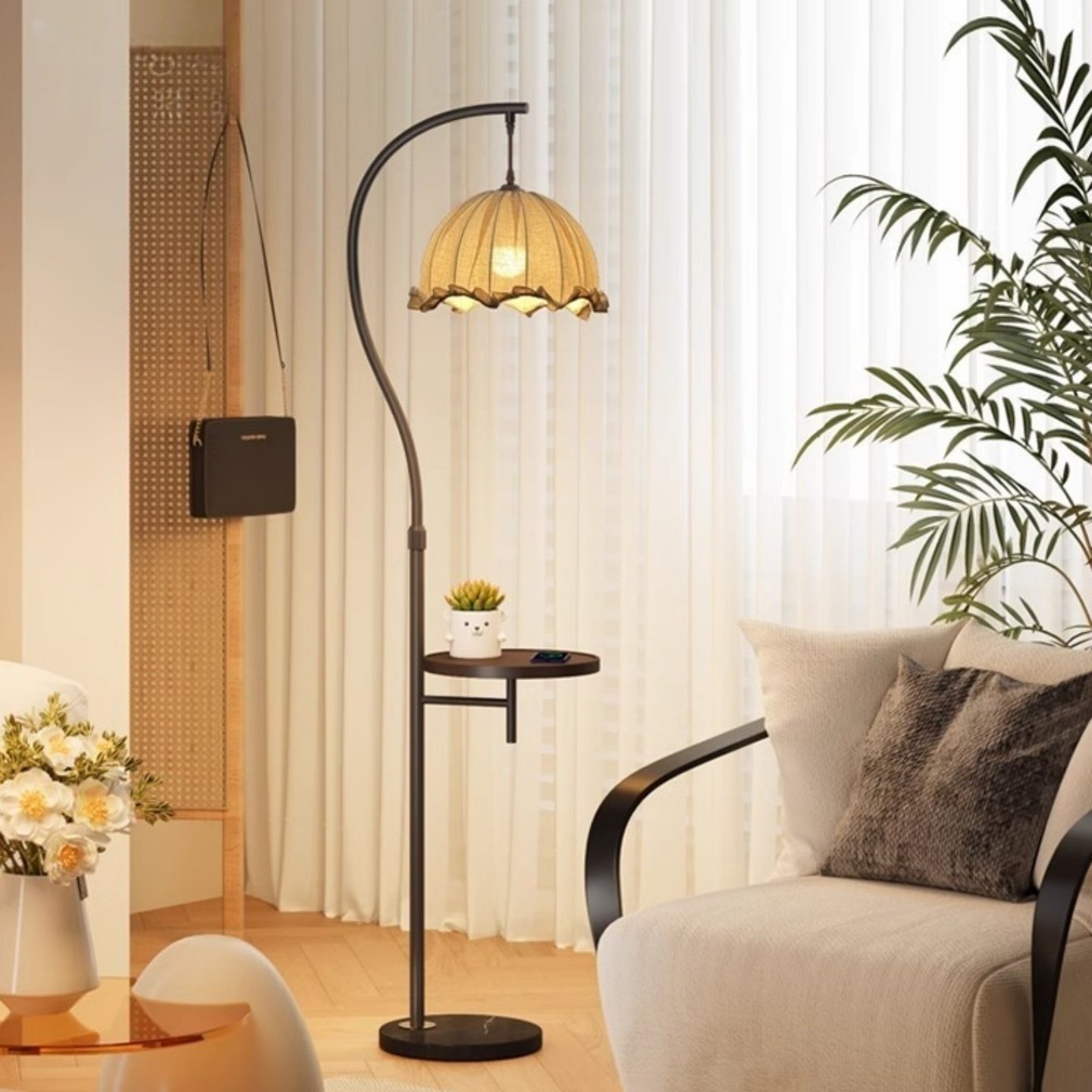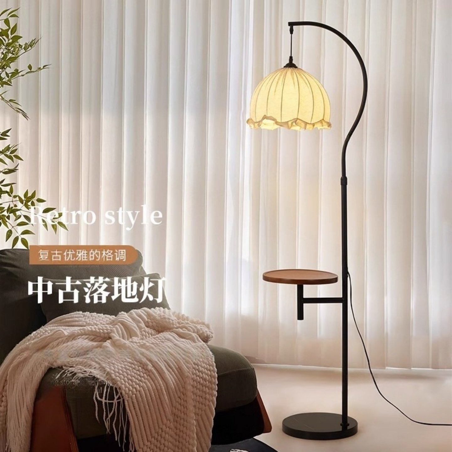 📚 中古风落地灯客厅氛围宋式美学灯置物架沙发装饰卧室床头一体台灯
