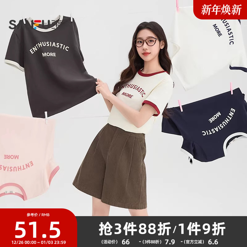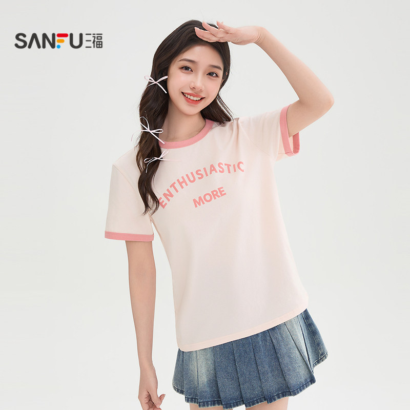 💥「三福短袖T恤女2026新款春夏季,简约撞色圆领英文印花短款上衣,小红书种草记」