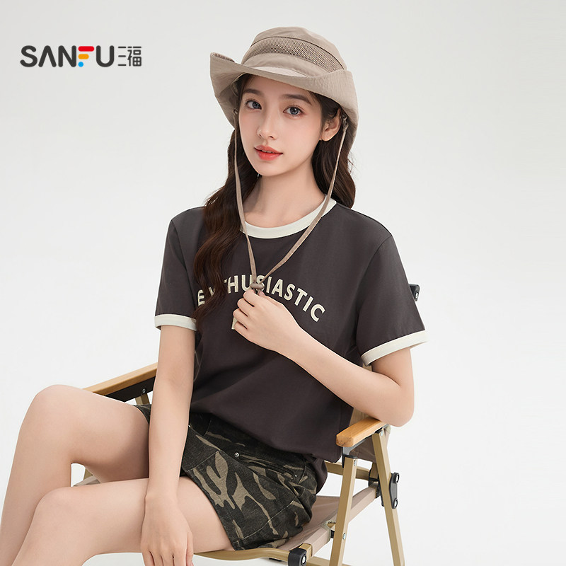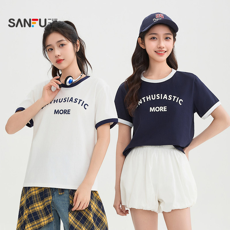 #三福短袖 #春夏季新品 #简约撞色 #圆领英文印花 #小红书种草记