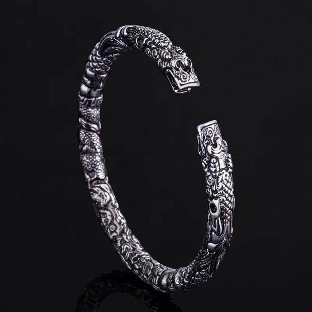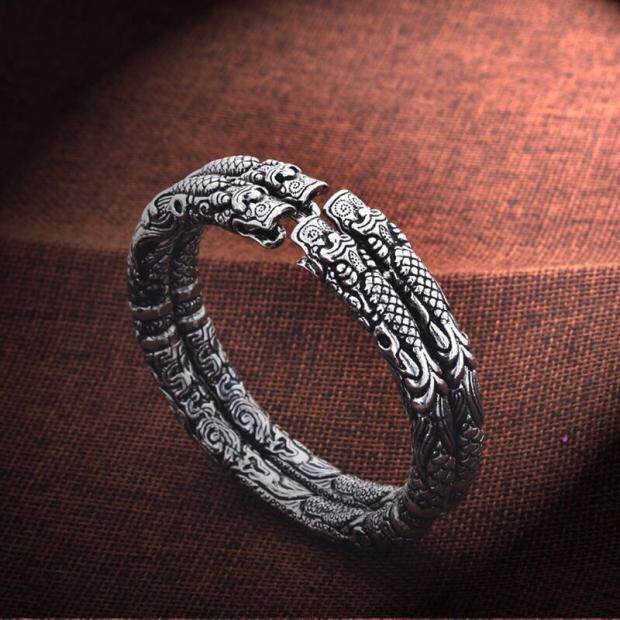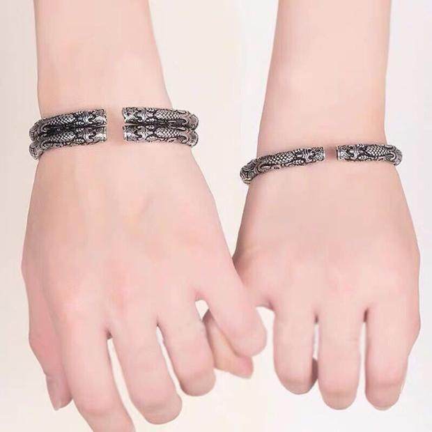 📚 二响环手镯复古做旧泰银老九门男女开口双龙头民族风古银手环礼物