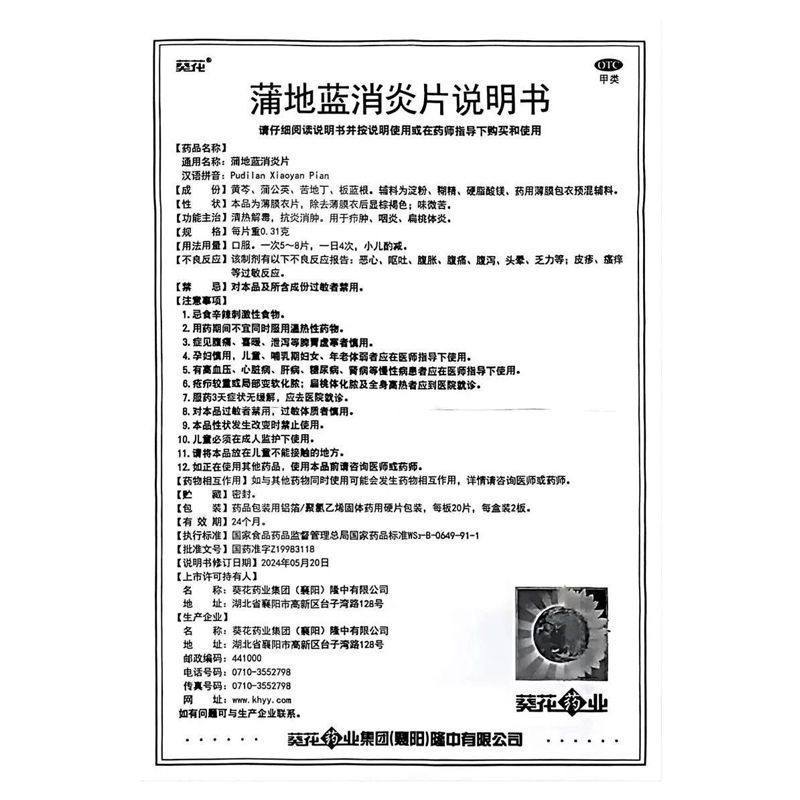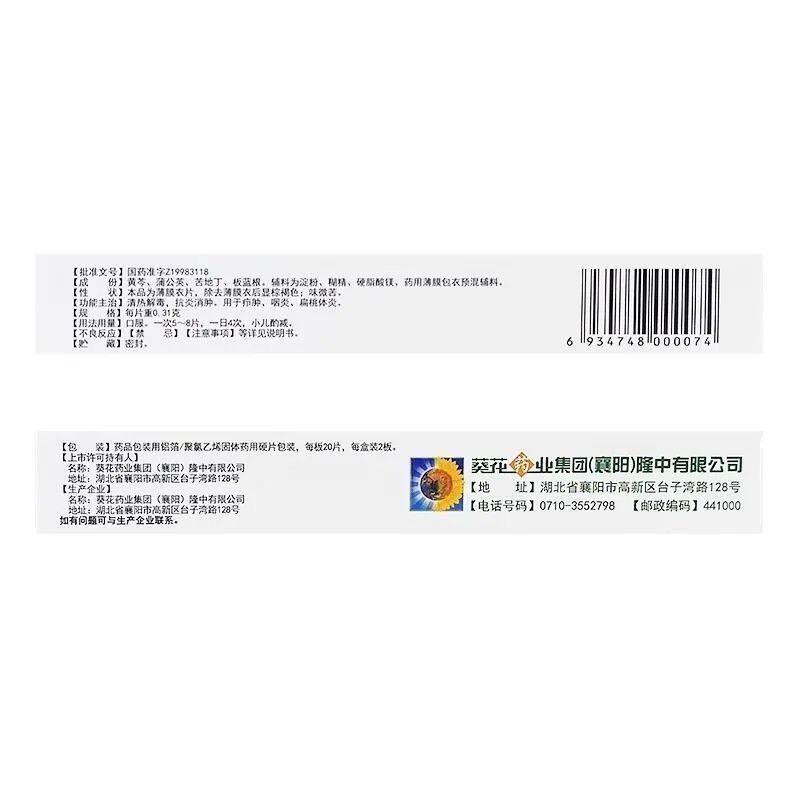 📚 葵花蒲地蓝消炎片40片/盒清热解毒抗炎消肿咽炎扁桃体炎kh