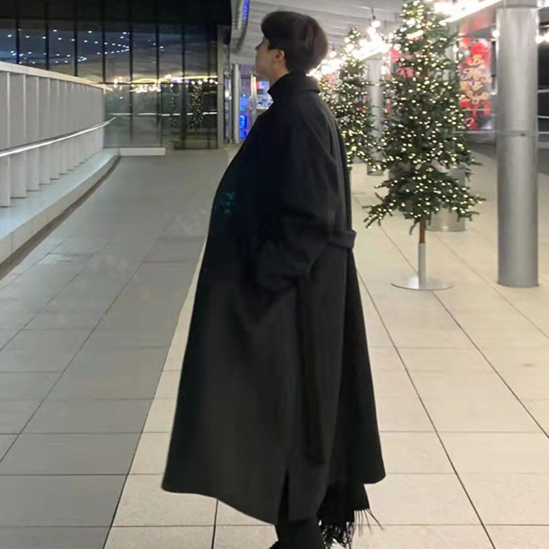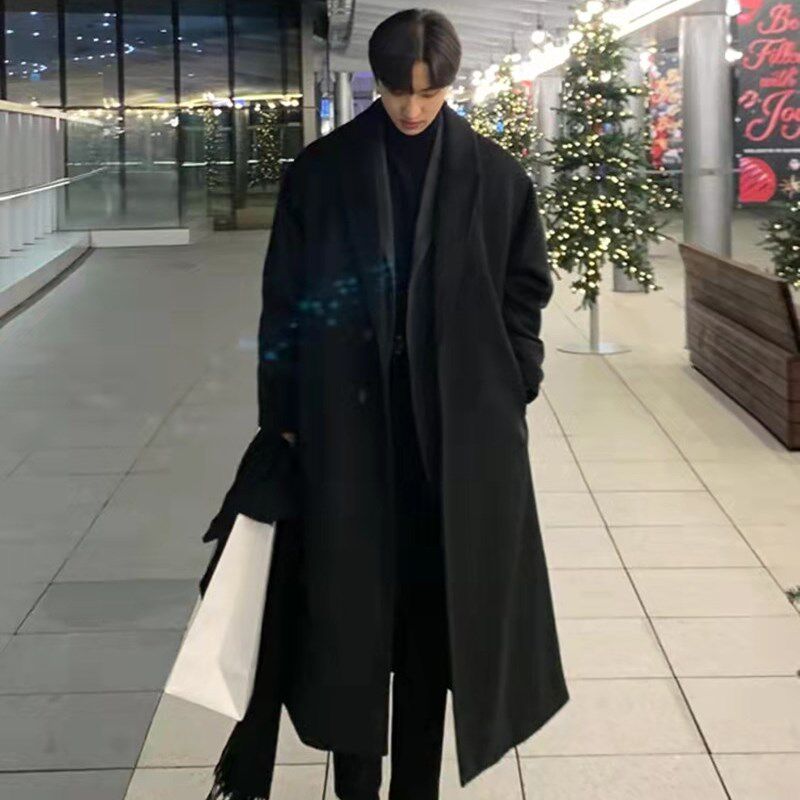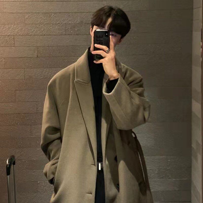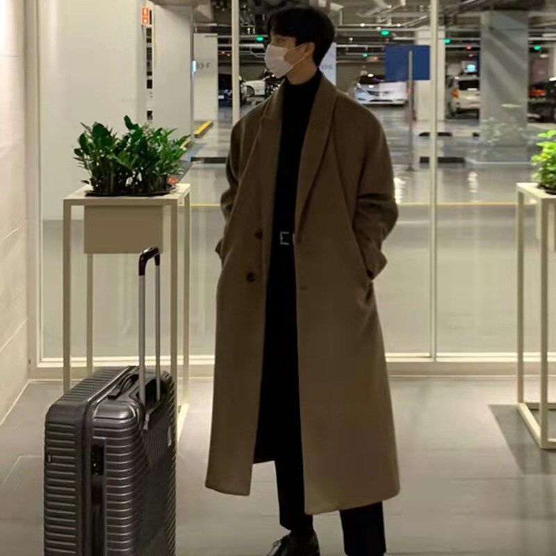 📚 冬季男士毛呢大衣潮流加厚韩版宽松呢子风衣男长款过膝非羊绒外套