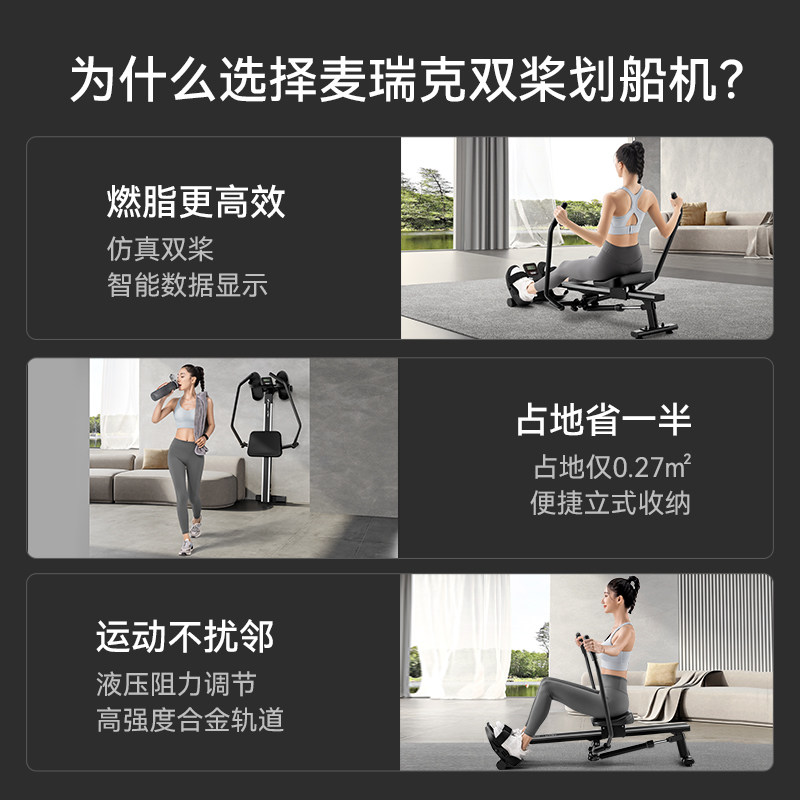 📚 麦瑞克超燃脂仿真双桨液压阻力划船机静音划艇机家用健身划船器材