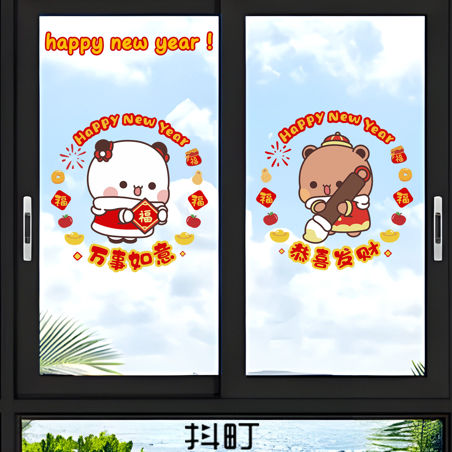 📚 新春款一二布布自粘贴阳台厨房玻璃门窗新年贴花新家过年氛围装饰