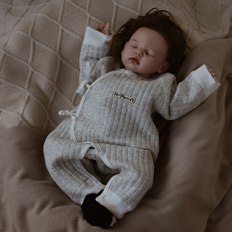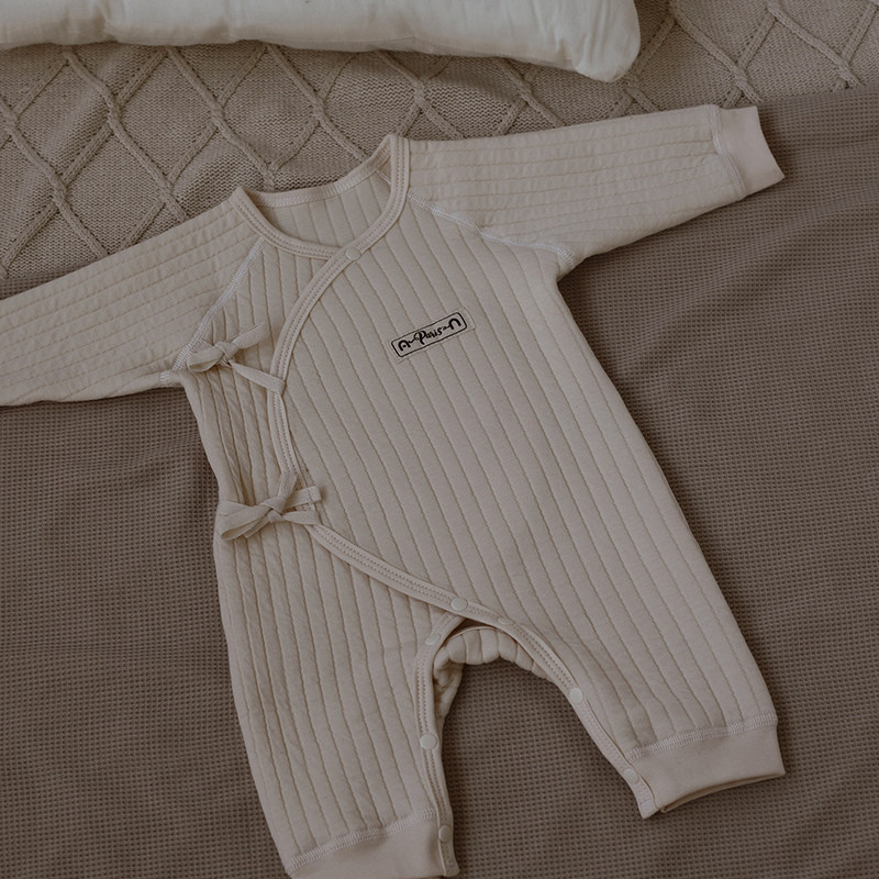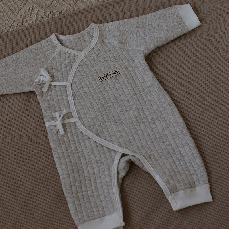 📚 婴姿新生儿宝宝夹棉连体衣秋冬季保暖睡衣婴儿空气棉厚哈衣和尚服