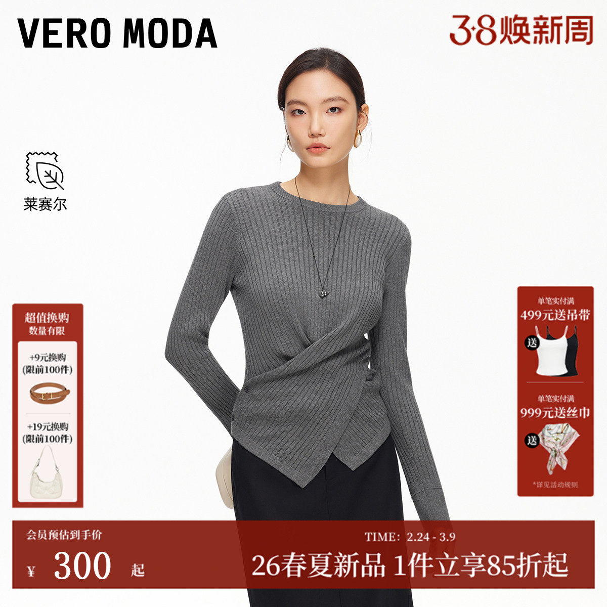 📚 Vero Moda针织衫2026春季新款含莱赛尔不规则下摆上衣326113023