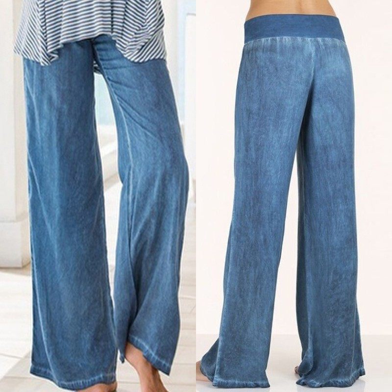 📚 2019欧美薄牛仔阔腿长裤女Plus size S-5XL big women long pants