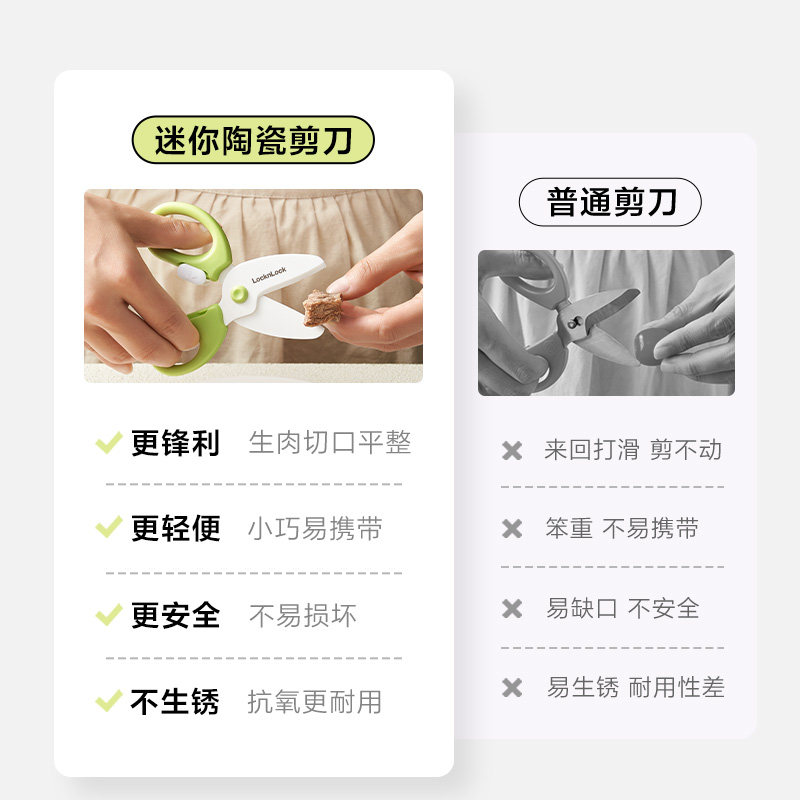 📚 乐扣乐扣辅食剪刀宝宝专用陶瓷儿童辅食剪外带便携可剪肉食物剪子