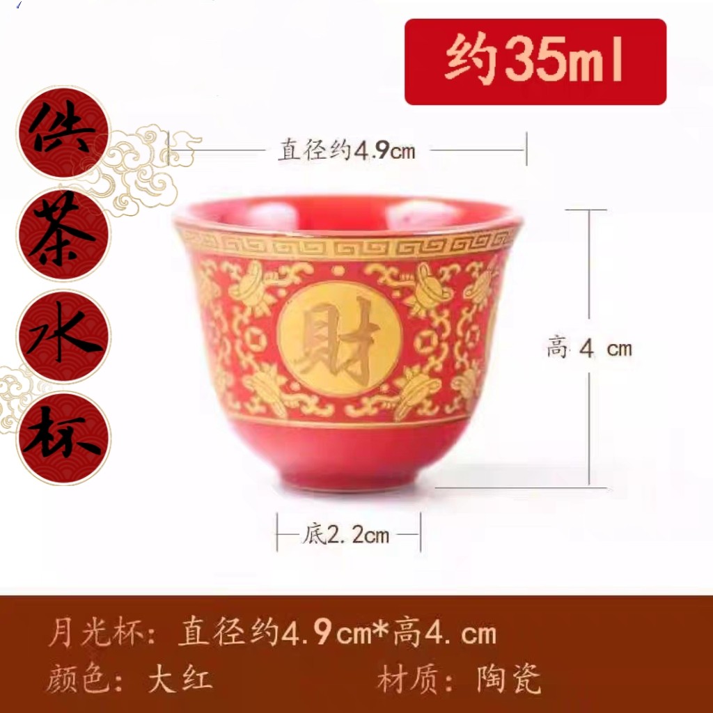 📚 供神茶杯陶瓷红色拜神奉神酒杯佛前供奉水杯寺庙佛堂家杯子敬茶杯
