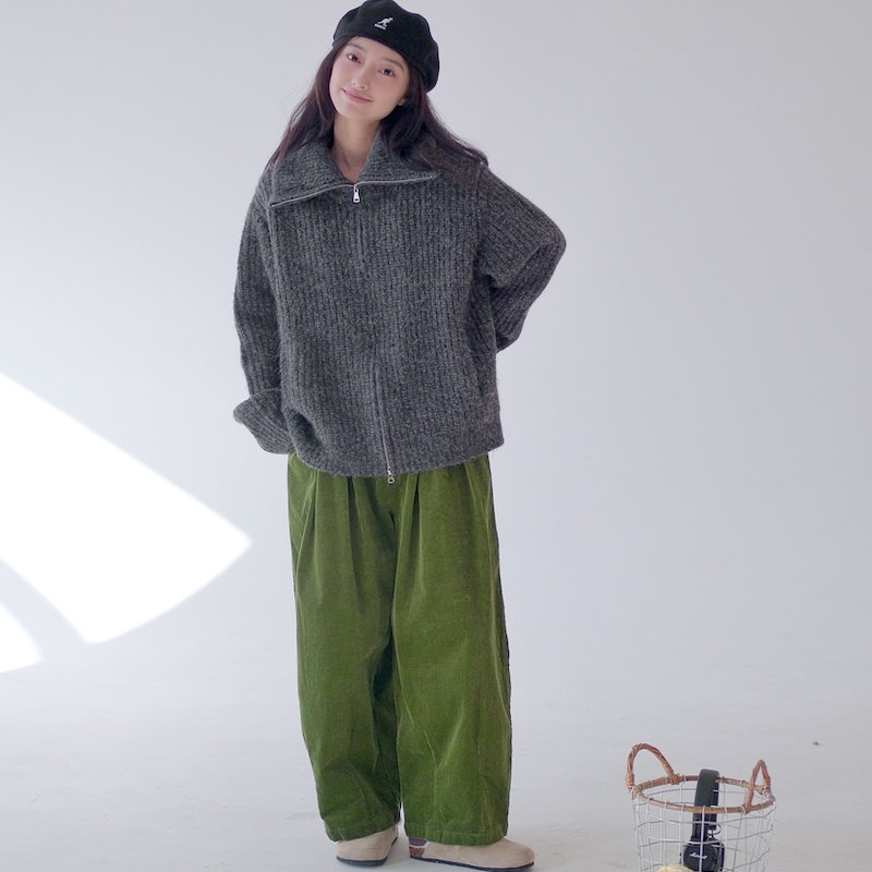 📚 日系超级宽松的拉链款保暖厚实的灰色毛衣外套