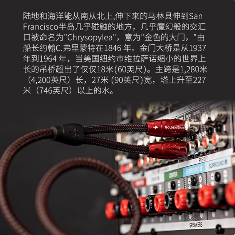 📚 美国AQ线圣Golden Gate金门大桥RCA模拟信号线 二对二发烧音箱线