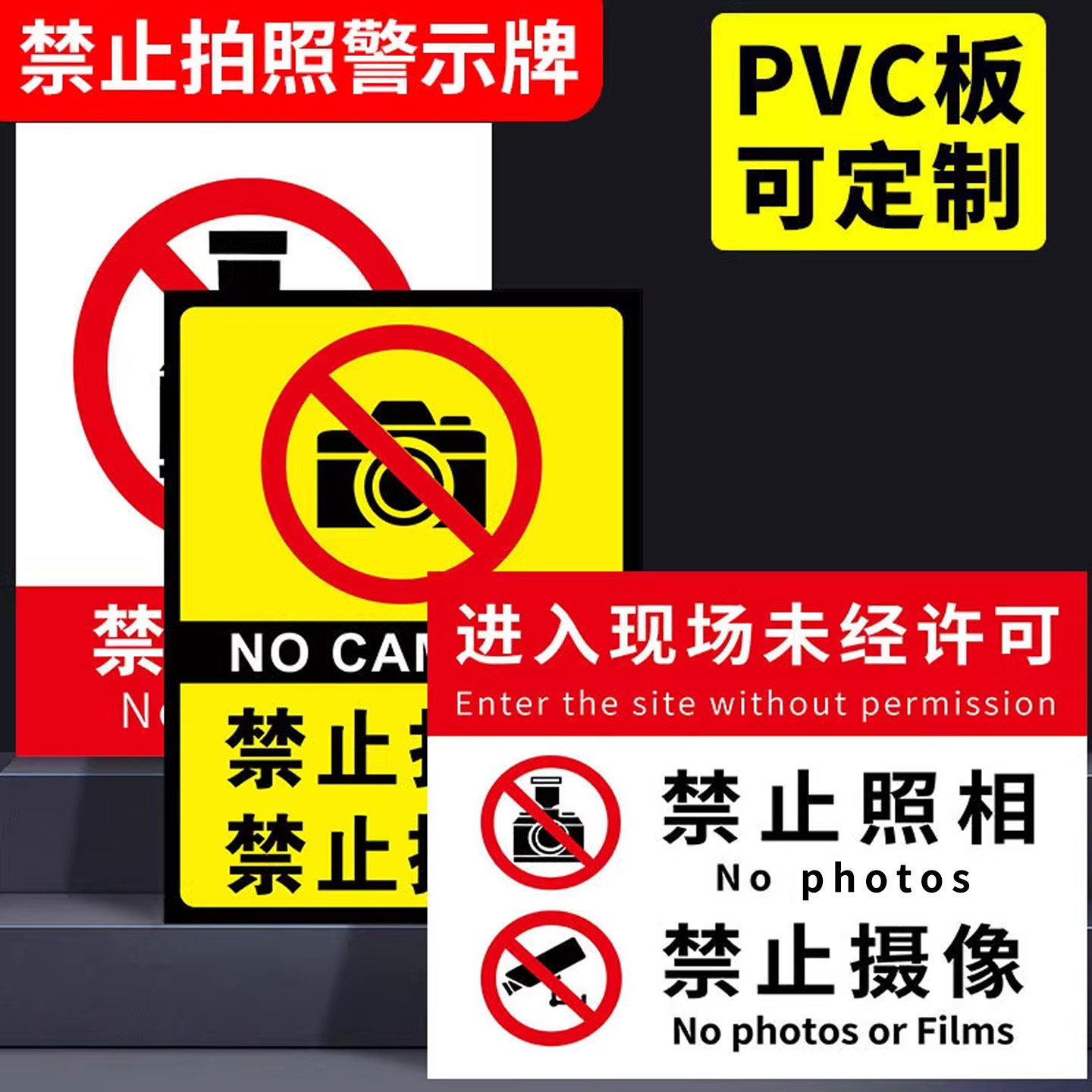 📚 禁止拍照警示牌进入现场未经许可严禁照相摄像标识告示牌店铺工厂厂区温馨提示告示牌标志贴纸指示牌定制