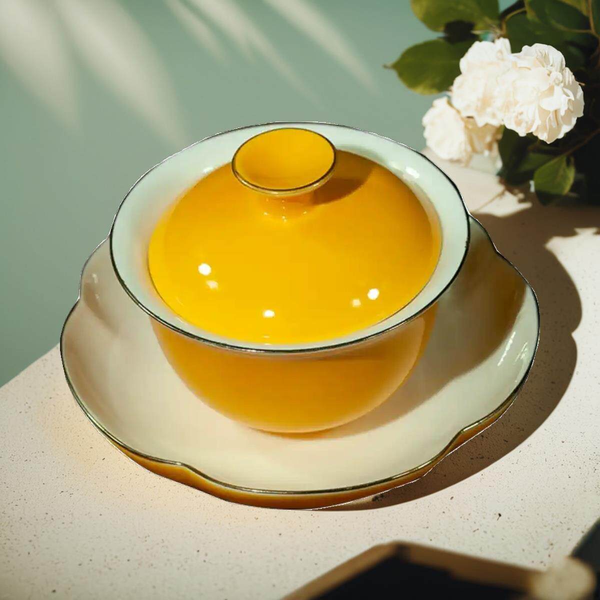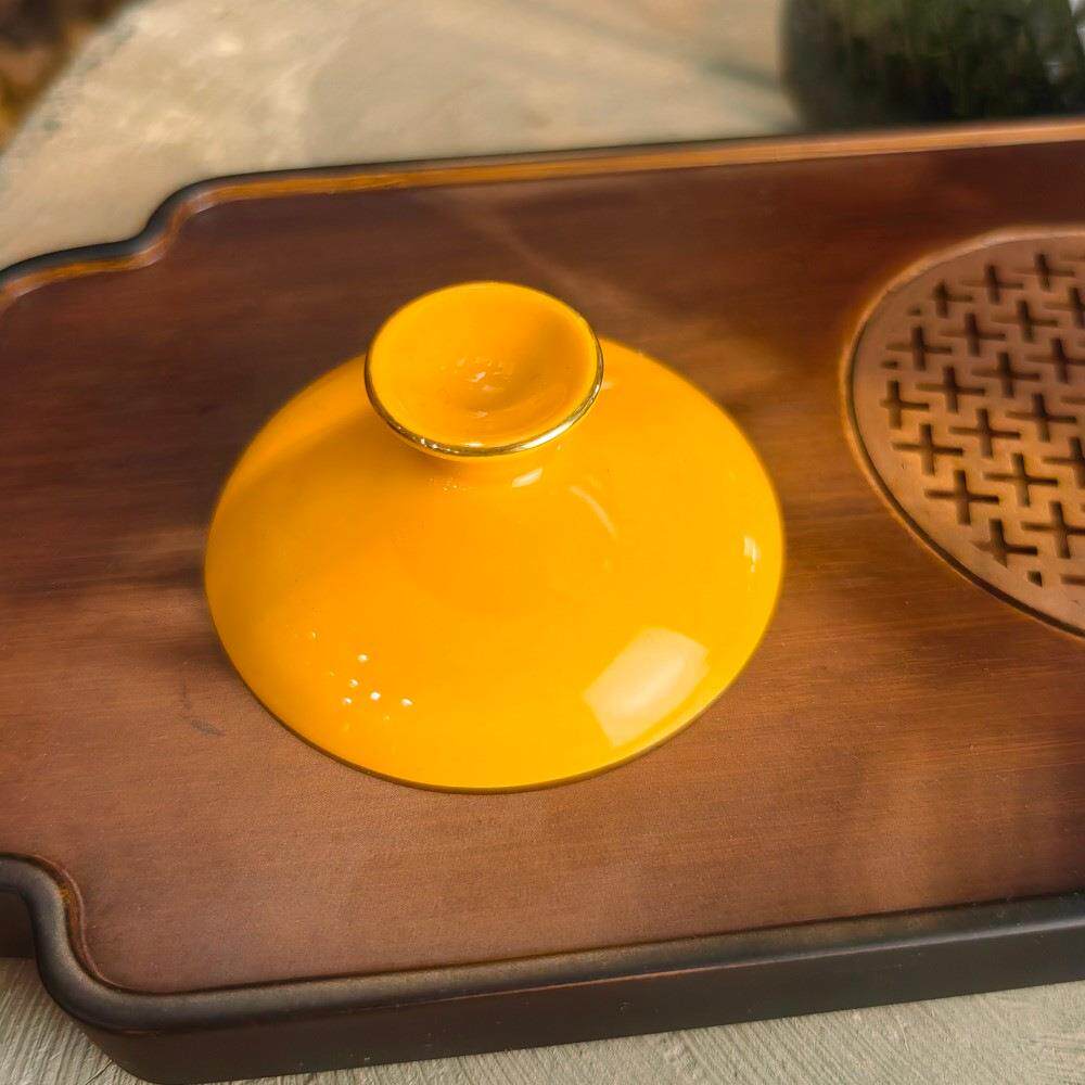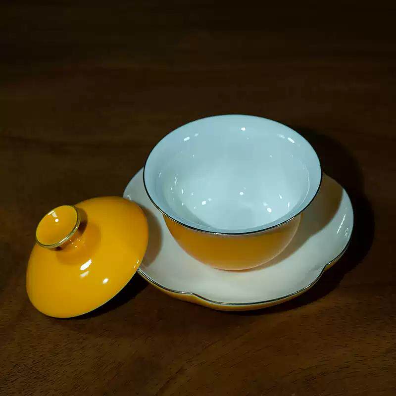 📚 瑞泉三才盖碗盖子 茶碗盖子 金边新款黄色泡茶杯陶瓷岩茶具