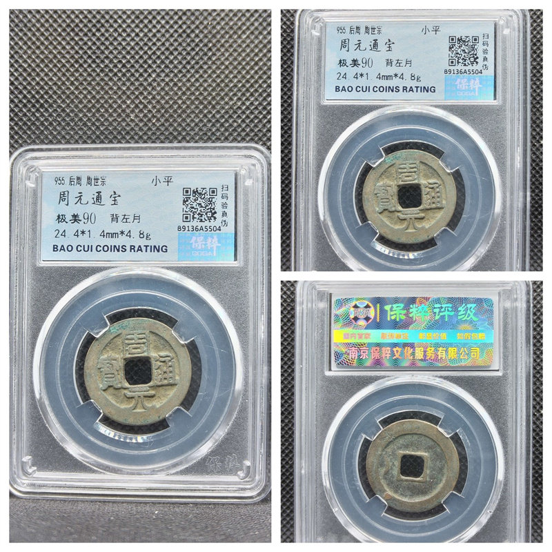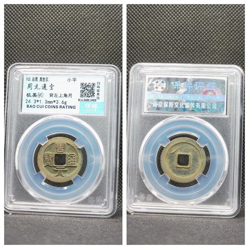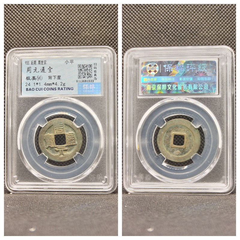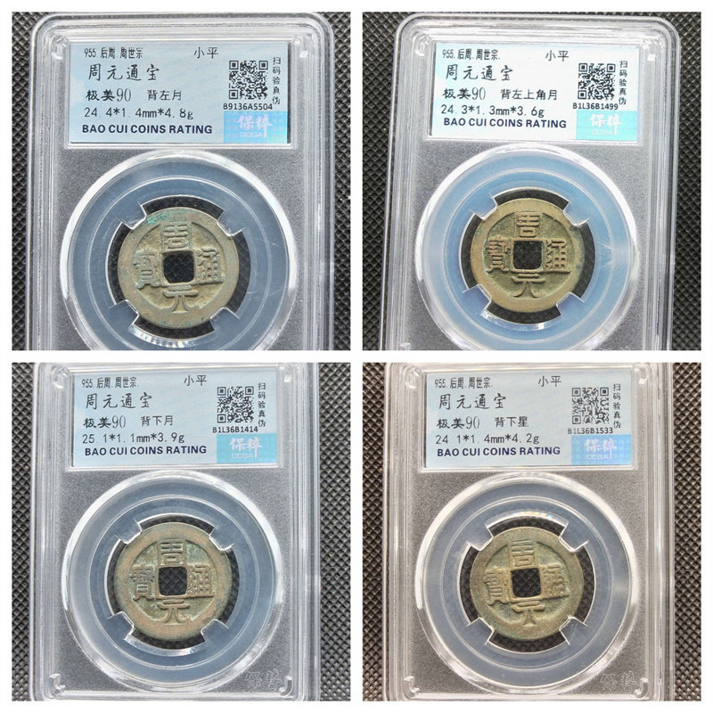 📚 保粹评级后周周元通宝小字厚肉右下角月八级大字阔周上月七级铜钱