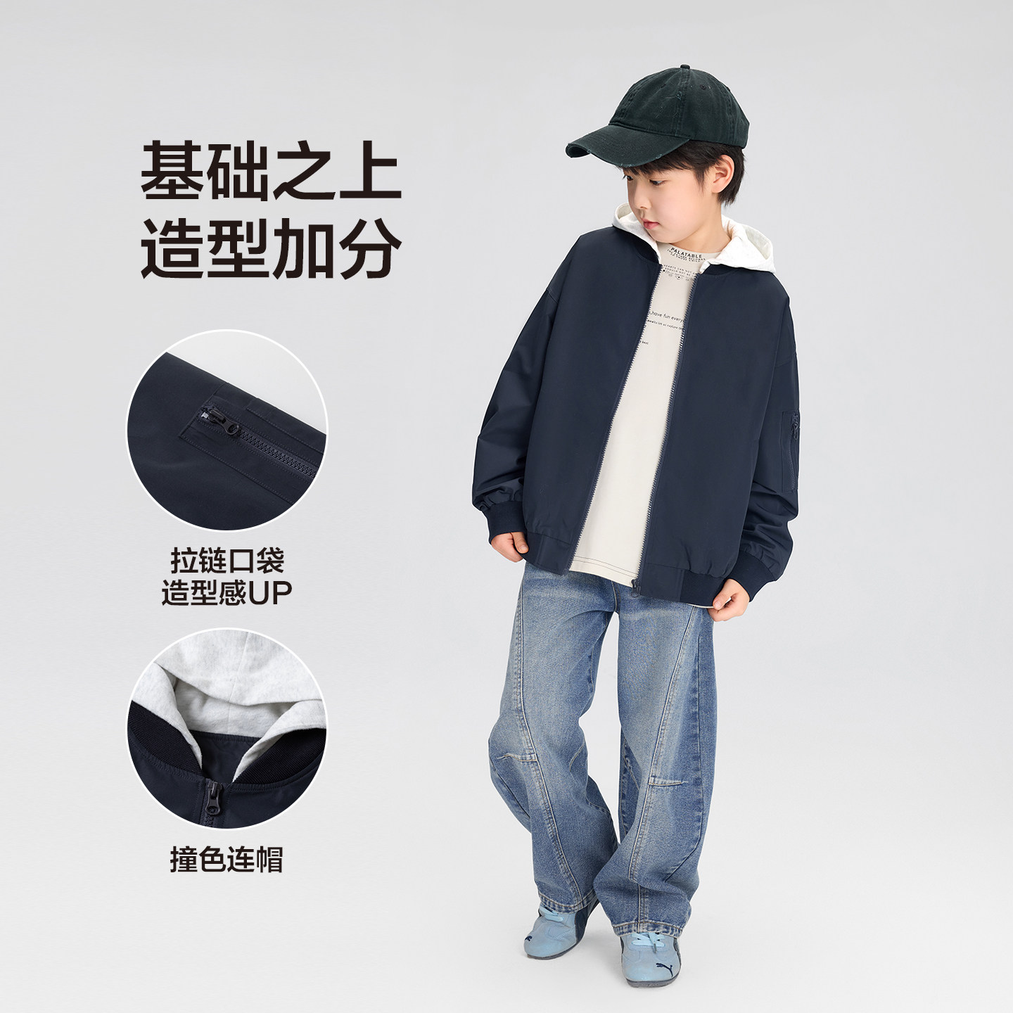 📚 左西童装男童外套2026春季新款儿童假两件连帽夹克春装中大童上衣