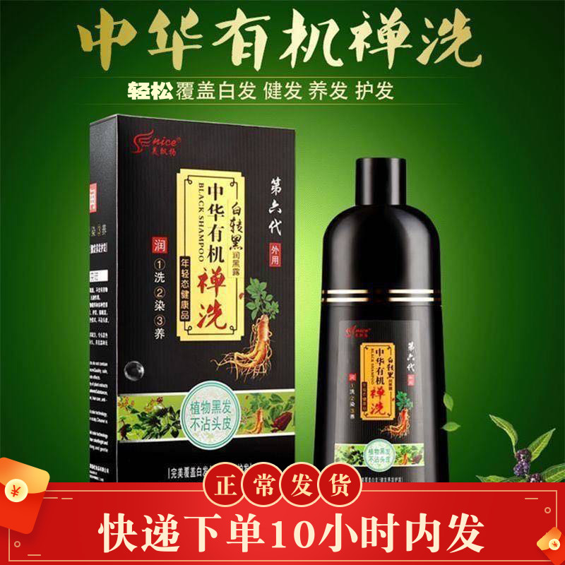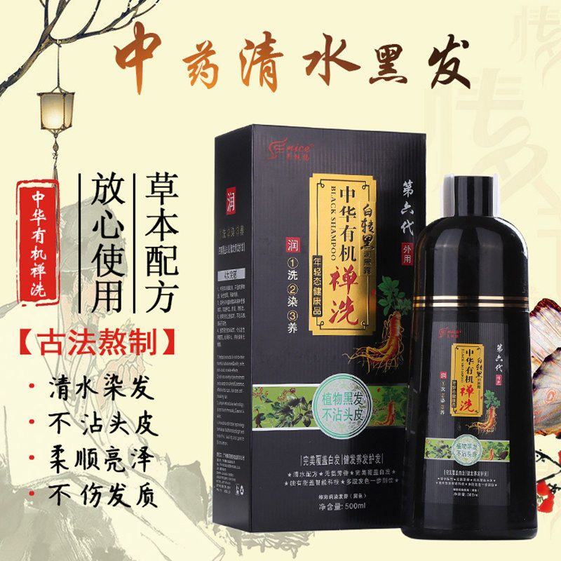 📚 中华有机禅洗染发水自己染白转黑一洗黑发顺天然植物无刺激染发剂