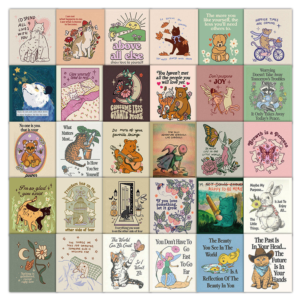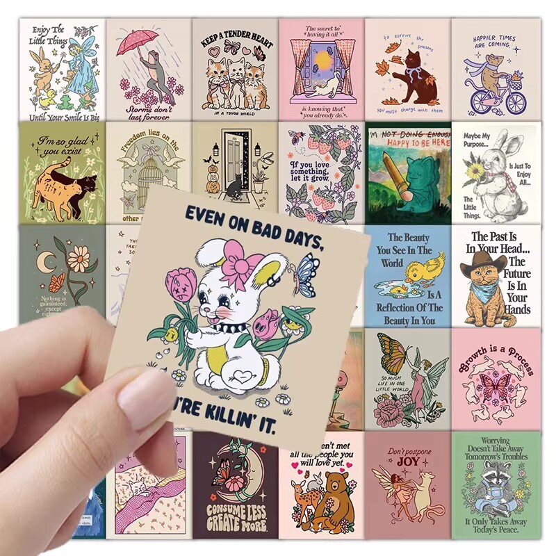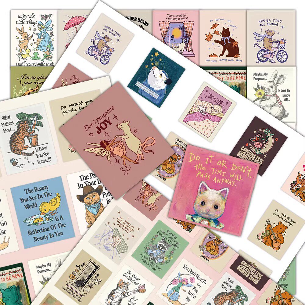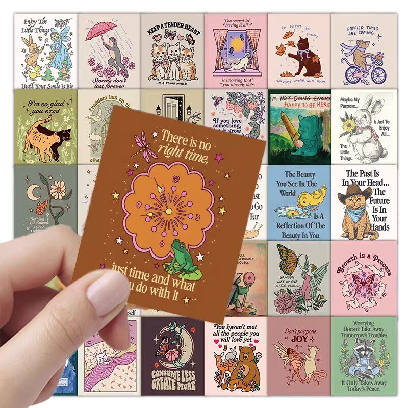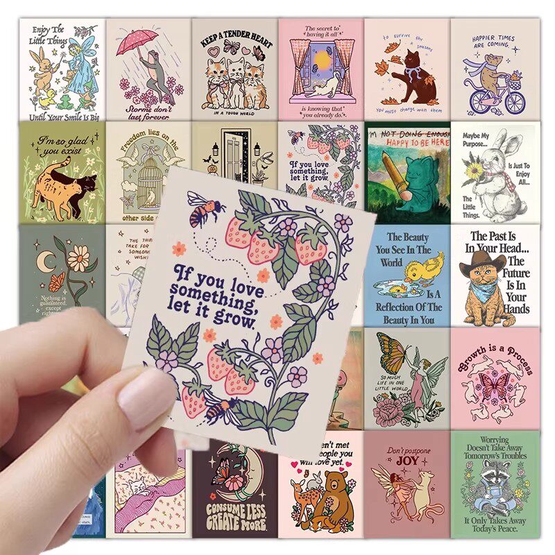 📚 100张复古心灵语句插画贴纸治愈英文文案短句创意diy手账装饰标签