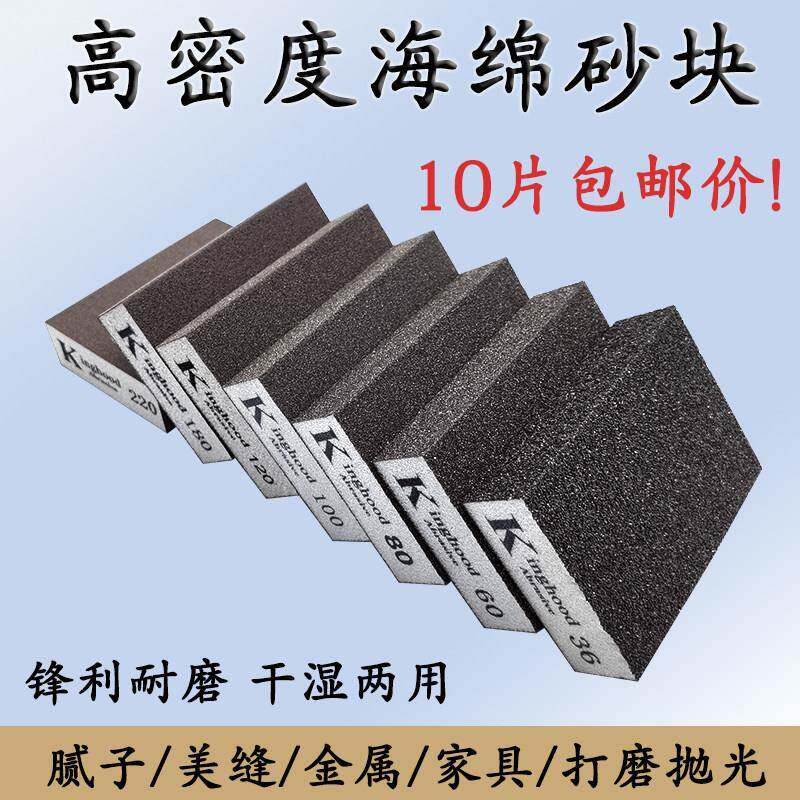 📚 10个海绵砂纸块美缝去黑边油漆批土打磨木工金属抛光方块海绵砂块