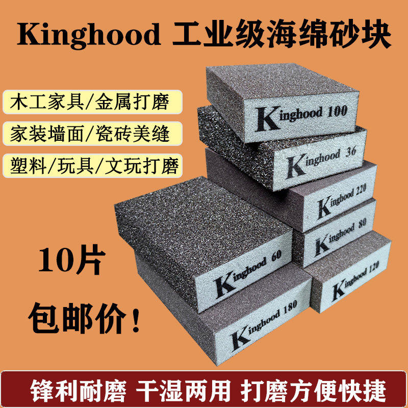 📚 10个海绵砂纸块美缝去黑边油漆腻子打磨木工金属抛光方块海绵砂块