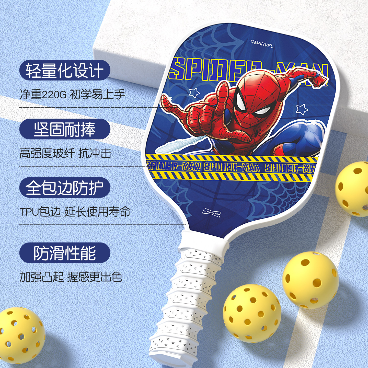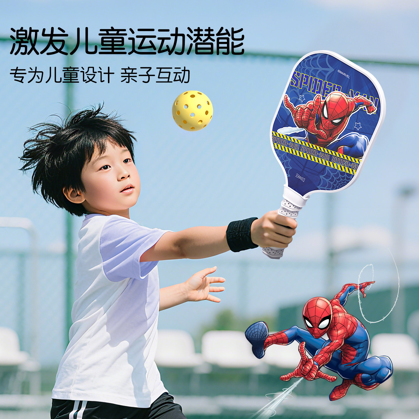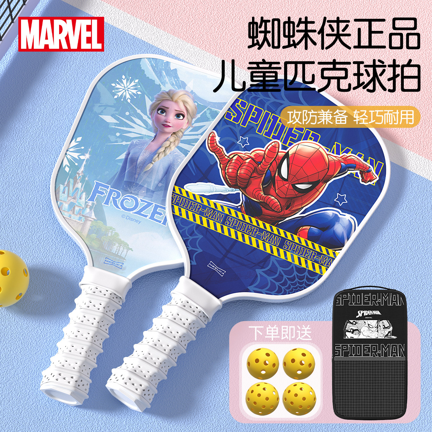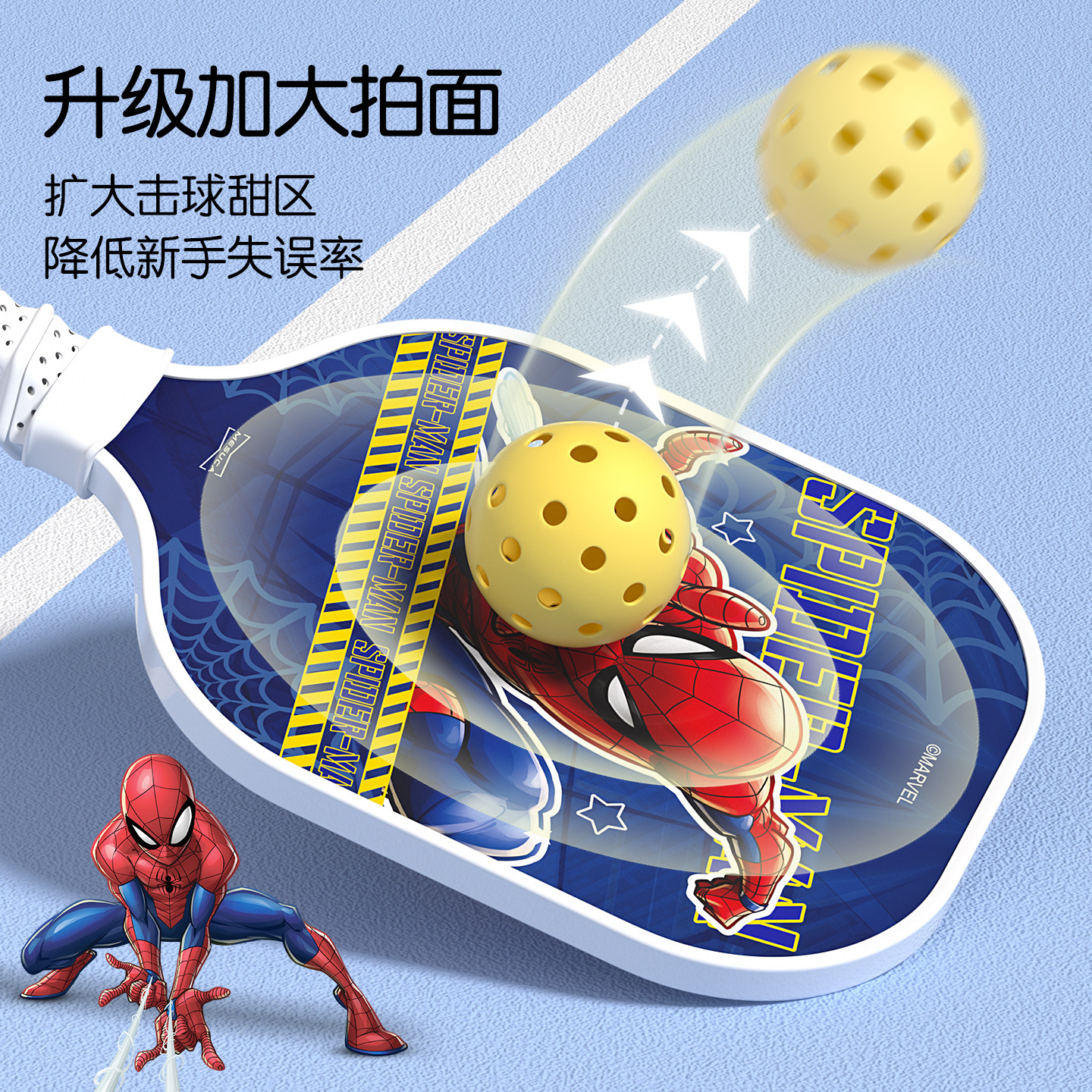 📚 蜘蛛侠儿童匹克球拍全套玻璃纤维pickleball初学者专用皮克球拍板