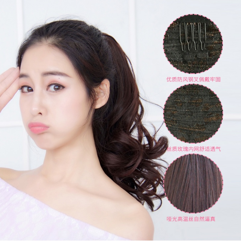 📚 宏发秀假发女短卷发爪夹子式大波浪假马尾辫隐形逼真中长款接发片