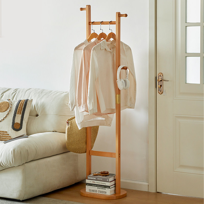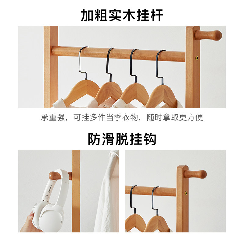 📚 实木衣帽架落地挂衣架卧室收纳置物架客厅立式晾衣服架子不占空间