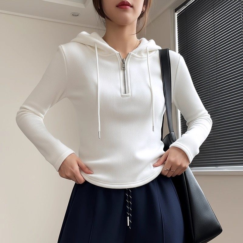 #新品卫衣 #白色连帽 #加绒卫衣 #高腰修身 #短款上衣 #时尚新宠 #券后价49