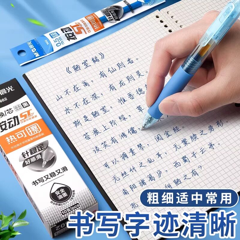 📚 晨光可擦笔替换芯热可擦笔芯黑色st笔头按动替芯三年级小学生专用晶蓝笔芯三年级0.5mm官方旗舰店正品